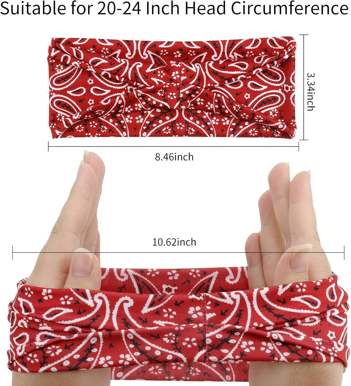 6Pcs Headbands Paisley Bandanas Head Bands Sweat Band Hair Wrap Headwrap Fashion About this item: milk fiber Imported Materials - Our 6 pack sweat headbands is made of good milk fiber fabrics,soft and comfortable, lightweight and breathable, moisture-wicking, non-slip, stretchy, not strangling the head, not tight, more comfortable to wear. Stretchable Size - These headbands for men are 3.74 inches wide and 9.05 inches long,can stretch up to 11.8 inches long,and can be stretched to fit 20-24 inch head circumference.Note: Headbands are not suitable for head circumferences over 24 inches. Fine Workmanship - Classic headband with wide front and narrow back design,exquisite workmanship, reject thread ends, reject uneven sewing, good resilience, not easy to loose and deform. Hair Accessory for Sports - Each hair band has its own colors,suitable for all sports,like Running,Yoga,Dancing,Basketball, Volleyball,Rock Climbing,Hiking, etc.It can absorb moisture and sweat well, preventing sweat from dripping into the eyes. Wigs Headband - This wide headband can work perfect with your headband wig and can perfect match your differnet outfit,make you charming,fashionable and attractive.You will get 6 pcs different colors paisley pattern headbands.