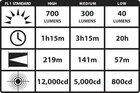 74614 Strion DS HL 700-Lumen Rechargeable Flashlight with 12-Volt DC Charger, Black Special Feature Rechargeable Color Black Power Source Battery Powered Light Source Type LED Material Aluminum About this item No Standalone lithium batteries are sold with the product Dual-switch technology: access multiple lighting modes via the push-button tail switch or head-mounted switch; switches operate independently TEN-TAP programmable switch allows user to select one of three different programs: high/medium/low with Strobe (factory default); high only without Strobe; high/medium/low without Strobe High for a far-reaching beam with maximum illumination: 700 Lumens; 420M beam; 44,000 Candela; runs 1.25 hours Medium for bright light, good beam distance and longer run time: 300 Lumens; 268M beam; 18,000 Candela; runs 3.25 hours