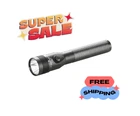 75430 Stinger LED High Lumen Rechargeable Flashlight with 120-Volt AC/12-Volt DC Charger and 2-Holders - 800 Lumens Special Feature Rechargeable Color Black Power Source Battery Powered Light Source Type LED Material Aluminum About this item Anodized aluminum construction with non-slip rubberized comfort grip 3 Lighting modes and strobe High for maximum illumination: 800 lumens; 24,000 candela; 310m beam; runs 1.5 hours Medium for intense brightness and longer run time: 400 lumens; 12,000 candela; 219m beam; 2.5 hours Low for extended run time: 200 lumens; 6,000 candela; 155m beam; runs 5 hours