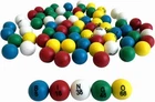 Made of high quality colorful plastic and in total of 75 balls, sturdy and durable. Each ball measures 7/8" (21 mm) in diameter, big enough for children’s hands and adults. Easily gripped and handled. These bingo balls come in 5 bright colors: blue, red, white,green, and yellow. The letters and numbers are in large black print on one side of the ball, making it easy to read and call combinations. Color code of BINGO: Blue-B-1-15, Red-I-16-30, White-N-31-45, Green-G-46-60, and Yellow-O-61-75. This set of replacement bingo balls fit 9" to 12" jumbo size bingo cages. Please check that the raffle bingo cage being used fits 7/8 inch balls. Great for anyone who likes bingo!Includes 75 bingo balls, bingo cage and bingo board not included! Note: the bingo balls will come in plastic frames and you have to remove. Ideal for family bingo games, giving you the opportunity to bring family more fun. Perfect for parties, barbeques, bingo halls, foundraisers, family game nights. You can also use them as markers for classroom activities, giveaways, raffles. Product Description If you need bingo balls for your next bingo game night. If you need bingo balls to replacement your old balls. If you are going to buy a gift for anyone who likes bingo. These bingo balls are the perfect for your needs. STURDY AND DURABLE Made of high quality colorful plastic and in total of 75 balls, sturdy and durable. Improved printing quality to prevent the numbers fade easily. EASY TO READ AND HANDLE Each ball measures 7/8" (21 mm) in diameter, big enough for children’s hands and adults. Easily gripped and handled. The letters and numbers are in large black print on one side of the ball, making it easy to read and call combinations. These bingo balls come in 5 bright colors: blue, red, white,green, and yellow. Color code of BINGO: Blue-B-1-15, Red-I-16-30, White-N-31-45, Green-G-46-60, and Yellow-O-61-75. Note: the bingo balls will come in plastic frames and you have to remove. This set of replacement bingo balls fit 9" to 12" large bingo cages. Please check that the raffle bingo cage being used fits 7/8 inch balls. If you are looking for bingo board or bingo cards, bingo chips to go with your new bingo balls, please check out at our store! Ideal for family bingo games, giving you the opportunity to bring family more fun. Perfect for parties, barbeques, bingo halls, foundraisers, family game nights. You can also use them as markers for classroom activities, giveaways, raffles. Unsuitable for children under age three as there are small parts.