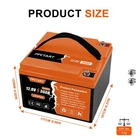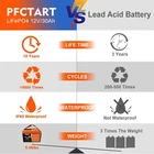 Features: 【Automotive Grade Lithium Battery】 PFCTART lithium iron batteries have exceptional quality since they are manufactured by Automotive Grade LiFePO4 Cells with higher energy density, more stable performance & greater power. Highest-level safety based on UL Testing Certificate for the cell inside the battery.This makes li-iron batteries perfect for solar home, RV, campers,motor homes, off-grid applications. 【10 Years lifetime】PFCTART LiFePO4 battery provides 5000+ cycles, which is more than 10 times to Lead Acid with 300~600 cycles. PFCTART LiFePO4 battery has a 10-year service life, three times longer than the Lead Acid's 3-year lifetime. 【95%* Efficiency】 PFCTART LiFePO4 battery's flat discharge curve holds above 12.8V for up to 95%,of its capacity usage, providing astronomical boosts in run-time compared to only 50% in Lead Acid. This product is your best choice for outdoor camping power and indoor easy installation. 【100% Protection】 PFCTART LiFePO4 battery has built-in BMS (Battery Management System) to protect it from overcharge, over-discharge, over-current, and short circuit with excellent self-discharge rate. Built-in high-temp cut off prevents charging over 167 °F (75 °C). Without memory effect, no matter what state the battery is, it can be used as soon as it is charged. PFCTART LiFePO4 battery is IP65 level waterproof, which set you free from worrying to install indoors or outdoors. Specifications: 7AH Battery type: LIFEPO4 MODEL: 7Ah 12.8V(4S2P) Rated capacity: 7Ah(89.6WH) Normal voltage: 12.8V Discharge termination voltage: 10.0V Charging voltage: 14.6V Internal resistance: ≤160mΩ Single cell: IFR 26650 3.2V 3500mAh Standard charging. Continuous current: 0.2C5A Continuous voltage: 14.6V Cut-off current: 0.01 C Standard discharge: Constant current 0.2C5A end voltage 10.0V Max. charging continuous current: 1.0 C Maximum discharge continuous current: 1.5 C Operating temperature range. Charge: 0~45℃ Discharge: -10~60℃ Product size: 151*65*95 MM Weight : 0.8kg 8AH Battery type: LIFEPO4 MODEL: 8Ah 12.8V(4S2P) Rated capacity: 8Ah(102.4WH) Normal voltage: 12.8V Discharge termination voltage: 10.0V Charging voltage: 14.6V Internal resistance: ≤160mΩ Single cell: IFR 26650 3.2V 3500mAh Standard charging. Continuous current: 0.2C5A Continuous voltage: 14.6V Cut-off current: 0.01 C Standard discharge: Constant current 0.2C5A end voltage 10.0V Max. charging continuous current: 1.0 C Maximum discharge continuous current: 1.5 C Operating temperature range. Charge: 0~45℃ Discharge: -10~60℃ Product size: 151*65*95 MM Weight : 0.8kg 24Ah Battery type: LIFEPO4 MODEL: 24Ah 12.8V(4S4P) Rated capacity: 24Ah(307.2WH) Normal voltage: 12.8V Discharge termination voltage: 10.0V Charging voltage: 14.6V Internal resistance: ≤180mΩ Single cell: IFR 32700 3.2V 6000mAh Standard charging. Continuous current: 0.2C5A Continuous voltage: 14.6V Cut-off current: 0.01 C Standard discharge: Constant current 0.2C5A end voltage 10.0V Max. charging continuous current: 20A Maximum discharge continuous current: 20A Operating temperature range. Charge: 0~45℃ Discharge: -20~60℃ Product size: 181*76*169mm Weight : 3.2kg 30Ah Battery type: LIFEPO4 MODEL: 30Ah 12.8V(4S5P) Rated capacity: 30Ah(384WH) Normal voltage: 12.8V Discharge termination voltage: 10.0V Charging voltage: 14.6V Internal resistance: ≤180mΩ Single cell: IFR 32700 3.2V 6000mAh Standard charging. Continuous current: 0.2C5A Continuous voltage: 14.6V Cut-off current: 0.01 C Standard discharge: Constant current 0.2C5A end voltage 10.0V Max. charging continuous current: 30A Maximum discharge continuous current: 30A Operating temperature range. Charge: 0~45℃ Discharge: -20~60℃ Product size: 177*167*125mm Weight : 4kg 300AH Battery type: LIFEPO4 MODEL: 300Ah 12.8V(4S3P) Rated capacity: 300Ah(3840WH) Normal voltage: 12.8V Discharge termination voltage: 10.0V Charging voltage: 14.6V Internal resistance: ≤180mΩ Single cell: IFR 3.2V 100Ah Standard charging. Continuous current: 0.2C5A Continuous voltage: 14.6V Cut-off current: 0.01 C Standard discharge: Constant current 0.2C5A end voltage 10.0V Max. charging continuous current: 100A Maximum discharge continuous current: 100A Operating temperature range. Charge: 0~60℃ Discharge: -20~70℃ Product size: 520*270*220mm(20.47x10.62x8.66 inch) Weight : 21.78 kg(48 lbs) Please note: It does not have series/parallel protocol, please do not use it for multiple series or parallel installations.