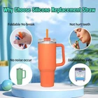 【Perfectly Compatible】:The stanley straws size is 12.2" length x 0.39" wide , 8 counts long colorful straws plus 2 cleaning brush. Compatible with stanley 40 oz 30 oz straw. Perfect for stanley accessories. 【Advantages of Silicone Material】:Food grade silicone is BPA free,non-toxic, odorless,eco-friendly,Non-teeth chipping,reusable and long-lasting.Safe use for driving. More friendly for people who like to chew straws .Easy to cut to the length you want. 【Easy to Clean】:The stanley cup straw come with 2 counts 12.2 inches extra long cleaning brush, you can wash the replacement straws for stanley 40 oz tumbler by hand with water,very easy to wash and keep clean.Dishwasher Safe. 【Package Includes】:8 counts silicone stanley replacement straw(4 straight and 4 curved straws) Suitable for various occasions.and 2 counts cleaning brush to keep them clean. 【Suitable For Gifting】:Perfect gift for your family and friends who likes to use the Simple Modern or Stanley Cup, they will like it very much.