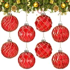 Features: Our glass Xmas ornaments can be applied in a wide range of events, you can hang them on Christmas tree, staircase, mantel, fireplace or other places, enhancing the festive ambiance in most spaces. These Christmas hanging balls can be a delicate present for your loved ones, family members and more, spreading the holiday cheer. Specifications: Material: glass Main color: red, gold Size: about 3.15 inches/ 8 cm Package includes: 8 x Glass Christmas ball ornaments Notes: Manual measurement, please allow slight errors on size. The color may exist a slight difference due to different screen displays. Package Contents: coming 8 glittery Christmas tree balls, mainly in red and gold colors, eye catching and beautiful, providing you with ample decorations to tastefully adorn your festive spaces, the bright colors and sufficient quantities to meet your Christmas tree decoration needs Glass Material: made from exquisite glass, these Christmas ball ornaments reflect light beautifully, enhancing the elegant appeal of your holiday decorations, and providing a warm and classic color palette suitable for the festive setting Vintage and Glitter Style: these glittery Xmas ornaments come in 4 distinctive styles, red transparent glass with gold trim, stylish and attractive, can help decorate your Christmas tree, adding variety and charm to your holiday decorations Ideal Size for Versatility: each Christmas tree decorations set is approximately 3.15 inches/ 8 cm, making it a suitable size to be charming, yet not overpowering; Use it to adorn trees, wreaths, garlands or other Christmas display, proper and rustic Versatile Decorations: this glittery Christmas ornament set is proper for various occasions, such as Christmas, anniversaries, weddings, parties, birthdays, housewarming, etc., can match with Christmas theme, provide attractive display and ornament