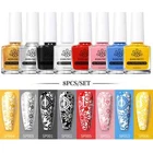 Type: Stamping Nail Polish Color: 8 Colors for Choose Quantity: : 8 Bottles Volume: Approx. 10ml Using Tools: Dry by natural, matched with Stamper&Scraper and Stamping Plates(not including) Package Contents: 8 Bottles 10ml BORN PRETTY Stamping Nail Polish Why Choose Our Nail Polish? Made of high quality material, the nail polish is of high pureness , making your nail with bright colors. Easy to apply, quick-drying. Special nail polish for nail art stamping and printing colors. Simple to use: Shake or stir very well before use. Comes with brush making nail art fast and easy for everyone. Allow you to create beautiful nail designs in short time. How To Use Our Nail Polish? Step 1: Apply the base gel and color polish on your nails. Step 2: Apply the nail latex. Step 3: Apply stamping polish on stamping plates. Step 4: Use scraper to scrape the excessive stamping polish. Step 5: Press the stamper quickly to pick up the pattern. Step 6: The pattern is completed and transfer on nail surface. Step 7: Peel off the nail latex and apply the top coat to finish the nail design.