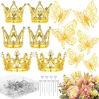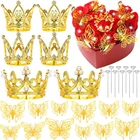 80 Pcs Flower Bouquet Accessories, Crowns for Flower Bouquets, 6 Pcs Mini Gold Crown 24 Pcs Gold Butterfly Decorations and 50 Pcs Flower Pins for Birthday Wedding Valentines Day Flower Supplies