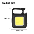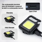 Features: 3 LIGHT MODES- The flashlight has 3 light modes to meet your different needs: cob high/low/strobe mode; long press the power button to adjust to the maximum brightness; UPGRADED DESIGN: Powerful magnet base and foldable handle free your hands while working.The COB small flashlight can be attached to any metal and can also be placed at different angles or hung in specific locations; SUPER BRIGHT COB LIGHT: The keychain flashlight features a powerful LED that provides up to 800 lumens of light while maintaining a portable size and minimalist design; USB CHARGEABLE: This flashlight is powered by a high-capacity built-in rechargeable battery, which can be used with other common portable power devices, such as computers, laptops, car chargers, wall chargers and mobile power; WIDELY USED: The portable flashlight has a hook and loop that can be easily attached to a key ring or bag and is water and impact resistant. Or, it is also a great bottle opener. It can be used in a variety of scenarios such as camping, dog walking, finding things, repairing and so on. Specification: Color: Black Material: aluminum alloy + PC Brightness: 800LM Bead type: COB Size: 61*45 mm/2.4*1.77 inch 3 lighting modes: high, low, strobe Working time: 3-8 hours Waterproof: IPX4 Battery: Built-in 500mAh lithium polymer battery Package Included: 1x COB keychain light 1x USB charging cable