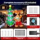 TURN YOUR YARD INTO A CHRISTMAS WONDERLAND - Bring the magic of Christmas right to your front yard with this 8FT inflatable christmas tree and gingerbread man. It’s the perfect Christmas yard decoration to welcome guests, impress neighbors, and create the coziest holiday photo spot for your family. Instantly turns any lawn or porch into a joyful winter scene. SPARKLING LED LIGHTS THAT SHINE ALL NIGHT - This LED Christmas inflatable features 5 built-in super bright lights that make your yard shine at night. Ideal for Christmas lawn decorations, outdoor parties, or neighborhood light tours, it instantly becomes the centerpiece that delights kids and guests alike. PLUG IN & INFLATE AUTOMATICALLY IN 1 MINUTE - No tools, no stress—simply plug it in and watch this blow-up Christmas decoration come to life in under a minute. The powerful built-in fan inflates it automatically, saving you time and effort so you can focus on enjoying the season. Perfect for busy parents decorating before guests arrive. STURDY & WEATHER-RESISTANT FOR OUTDOOR USE - Built with durable 210D polyester, this outdoor Christmas inflatable includes 8 stakes, 4 ropes, and 2 sandbags to stay secure in windy or snowy weather. Perfect for creating a safe and stable Christmas yard display that lasts through the season. REUSABLE & EASY TO STORE FOR NEXT CHRISTMAS - When the holidays are over, just unzip, deflate, and fold it up. This lightweight inflatable Christmas decoration fits neatly into your storage bin and is ready to use again next year. A fun, eco-friendly way for families to celebrate Christmas—year after year, with less clutter and more cheer. Product description My inflatable isn’t standing up properly. What should I do? Please make sure the zipper at the bottom is fully closed before plugging in the blower. If the zipper is left open, air will leak out and the inflatable Christmas decoration won’t stay upright. Always double-check the zipper before use. The blower is working, but the inflatable looks soft or uneven. Check that the blower’s air outlet is not blocked by grass, snow, or fabric. The inflatable needs clear airflow to fill evenly. During the first few minutes, gently lift or adjust the body to help the air distribute properly. How can I keep my inflatable stable outdoors? Tie the provided ropes to the D-rings and secure the other ends to the ground stakes. Adjust the rope length to keep it balanced. For windy areas, place sandbags or other weights at the base for better stability. Can I leave the inflatable plugged in all day? The blower can run continuously, but please unplug it during heavy rain, snow, or when there’s a lot of moisture. This inflatable is not for use in wet conditions and should be kept dry to protect the blower and extend its lifespan. How do I store it after the holidays? Make sure the inflatable is completely dry before packing. Wipe off moisture and dirt, unplug the blower, and fold neatly. Store it in a cool, dry place to prevent mold and damage.