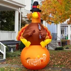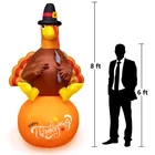Thanksgiving Inflatable Decorations 8Ft Inflatable Turkey Blow Up Turkey Built-in LED Lights Wanna add some fun to your yard for the upcoming Thanksgiving? This inflatable turkey is an ideal choice. Your and neighbor would love it! When you place this fall Thanksgiving decoration outdoors and indoors, home, yard, garden, lawn, patio, porch, party, stage, restaurants, cafes, playgrounds, etc. the large full bodied turkey will be a big hit at your thanksgiving. Specification: Material: Polyester Inflated height: 8 feet Power: Plug in Package including: 1 x inflatable turkey, 1 x adapter,2 x Clips,4 x ground stakes and 4 tethers. Caution: 1. Protect the blower and power cord from water. 2. Do not inflate during storms or strong winds. 3. Please make sure the air blower is facing up when inflating. The air blower facing the ground will affect the effect of inflating. Supersized Decor: The Thanksgiving Decorations adorable inflatable turkey stands 8 Ft tall. It will be the cute centerpiece of your Thanksgiving decoration. Easy Setup and Storage: This Thanksgivings inflatable decoration comes with a powerful built-in blower. Just plug it in and the large turkey will be self-inflating and in 90 seconds standing up to its full height. For storage simply let the air out and fold it. Excellent quality: The Thanksgiving outdoor decoration is made of thickened waterproof polyester fabric. Soft, light and firm, wear-resistant. Please make sure the air blower is facing up when inflating. The air blower facing the ground will affect the effect of inflating,Features low noise, our product only makes a little noise when operating in the room; If put in the outdoor, the noise can be neglected. Reinforced Tie-Downs: 4 Ground stakes and 4 tethers are provided for tie-down. Built-in fixed sandbag, an opening at the bottom with a zipper provides space for adding some heavy objects to make it more secure and stable. No need to worry that our Thanksgiving yard inflatables will fly away with the wind. Wide Application: When you place this fall Thanksgiving decoration outdoors and indoors, home, yard, garden, lawn, patio, porch, party, stage, restaurants, cafes, playgrounds, etc. the large full bodied turkey will be a big hit at your thanksgiving.