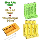 8Pcs AA & 8Pcs AAA 1.2V Ni-MH Rechargeable Batteries + USB Smart Charger 6 Slot Warm Tips: Before use, please remove the plastic packaging film of the battery. AA / AAA NiMH Battery 1.2v Features: 1.【Widely used】 The AA batteries rechargeable 1.2v is perfect for solar garden lights, landscape lights, lawn lights, etc.It can replace all disposable alkaline batteries for low power electronic products. 2.【Easy to Charge】 The AA rechargeable batteries Ni-MH can be charged by solar lights or standard charging devices. Better high-temperature performance than other types of batteries, can be used from -4℉ to 140℉, and can be charged from the sun even in the snow. 3.【Safe and Reliable】 The Ni-MH AA 1.2v rechargeable battery is very safe and reliable. For transportation safety, these Ni-MH AA batteries are only pre-charged to 30%, so please charge them before use for longer working time. 4.【Durable】 Our Ni-MH AA batteries rechargeable have a capacity of 700mAh and can be recharged at least 500 times continuously. Save you the cost of buying disposable alkaline batteries and reduce the harm to the environment. 5.【Suggestion】 Please charge the battery after each power exhaustion, otherwise it will affect the capacity and life. In addition, charge every 3 months to extend the life of the battery. NiMH AA Battery 1.2v Specification: Capacity: 700mAh Voltage: 1.2V Size: diameter 14mm*50 mm Terminal Type: Button Top Chemistry: Ni-MH (Nickel Metal Hydride) Rechargeable Times: Up to 1000 times No Memory Effect Note: Do not disassemble or modify the rechargeable battery NiMH AAA Battery 1.2v Specification: Capacity: 700mAh Voltage: 1.2V Size: diameter 10mm*44 mm Terminal Type: Button Top Chemistry: Ni-MH (Nickel Metal Hydride) Rechargeable Times: Up to 1000 times No Memory Effect Note: Do not disassemble or modify the rechargeable battery Package Included: 8X Ni-MH AA 1.2v Rechargeable Battery 700mAh 8X Ni-MH AAA 1.2v Rechargeable Battery 700mAh 1X AA AAA USB Universal Battery Charger 6-Slot Warm Tips: 1. Before use, please remove the plastic packaging film of the battery. 2. Please check the "+" and "—" directions of the battery before you charge the battery. 3. Do not put the product into fire, short circuit, dissassemble and extrude. 4. Do not mix charging with different type of batteries, which may explode or leak, causing personal injury. 5. Please use up the power each time, then recharge it otherwise it will affect its capacity and lifetime. 6. Please take out the battery if you won't use for a long time to avoid battery leakage. 7. Note:Please find us in first time when you find the parcel Broken/Scratch/Function Error/Miss Parts/Unwork/has not arrived etc, we always have more details and solutions, even duty for your order. On Jan 18, 2025 at 16:01:49 PST, seller added the following information: