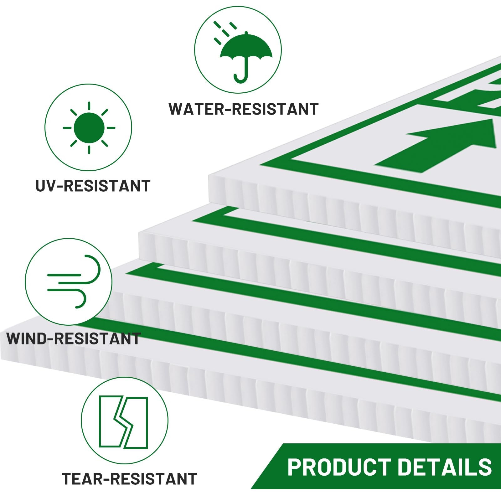 Features: Nice gifts: These parking signs for business are suitable for sending to your friends, colleagues, relatives, neighbours, family members and others who are going to hold a party, they will be happy to receive these gifts. Double sided design: These event signs outdoor adopt double sided printing design, which can ensure that visitors can see the signs from different directions and reduce guests' parking time. Specifications: Parking signs for event: plastic corrugated board H stands: metal Color: white, green Size: Parking signs for event: 12 x 16 inches H stands: 8 x 16 inches Package includes: 9 x Event parking signs with arrows 9 x H stands Notes: Manual measurement, please allow slight errors on size. The color may exist a slight difference due to different screen displays. Rich in Quantity: you will receive 9 pieces of event parking signs and 9 pieces of metal H stands, including go straight arrow signs, go left arrows signs, and go right arrows signs, enough quantity and various styles to meet your needs and replacements, and you can also share some with your friends and family members Reliable Material: these arrow signs for directions are made of quality plastic corrugated board material, reliable and reusable, sturdy and waterproof, not easy to break or fade, which can serve you for a long time and you can use them with confidence Size Information: each parking sign for event measures approx. 30 x 40 cm/ 12 x 16 inches, and the metal H stand measures approx. 20 x 40 cm/ 8 x 16 inches, large enough to attract the attentions of your guests, bringing much convenience to you Wide Range of Applications: these parking signs are classic and practical decorations, which can be applied in many occasions, such as weddings, schools, parties, openings and other large events, direct your guests to event parking with this event sign Easy to Install: parking sign with arrow is easy and convenient for you to use, you just need to insert the H shaped stakes into the parking signs for event and then into the ground to display, you can finish the installations in second, saving your time and energy