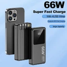 Product Description Previous pag Perfect compatibility The product has a built-in smart chip that can automatically identify all USB devices on the market, and then change the voltage and current to make it compatible with different devices Specification: Item: 66W Super Fast Charge Power Bank Battery Capacity: 300000mAh Material: PC+ABS+Aluminum alloy Color: Black, With Micro USB & Type C Input Feature: 66W Super Fast Charge for Huawei PD20W Fast Charge for iPhone Support PD Fast Charging Support Type C Input and Output Two-Way Fast Charging Built in Type C Cable/For Apple Cable/USB Charging Cable With LED Digital Display Package Included: 1x Power Bank 1x USB Cable 1x User Manual