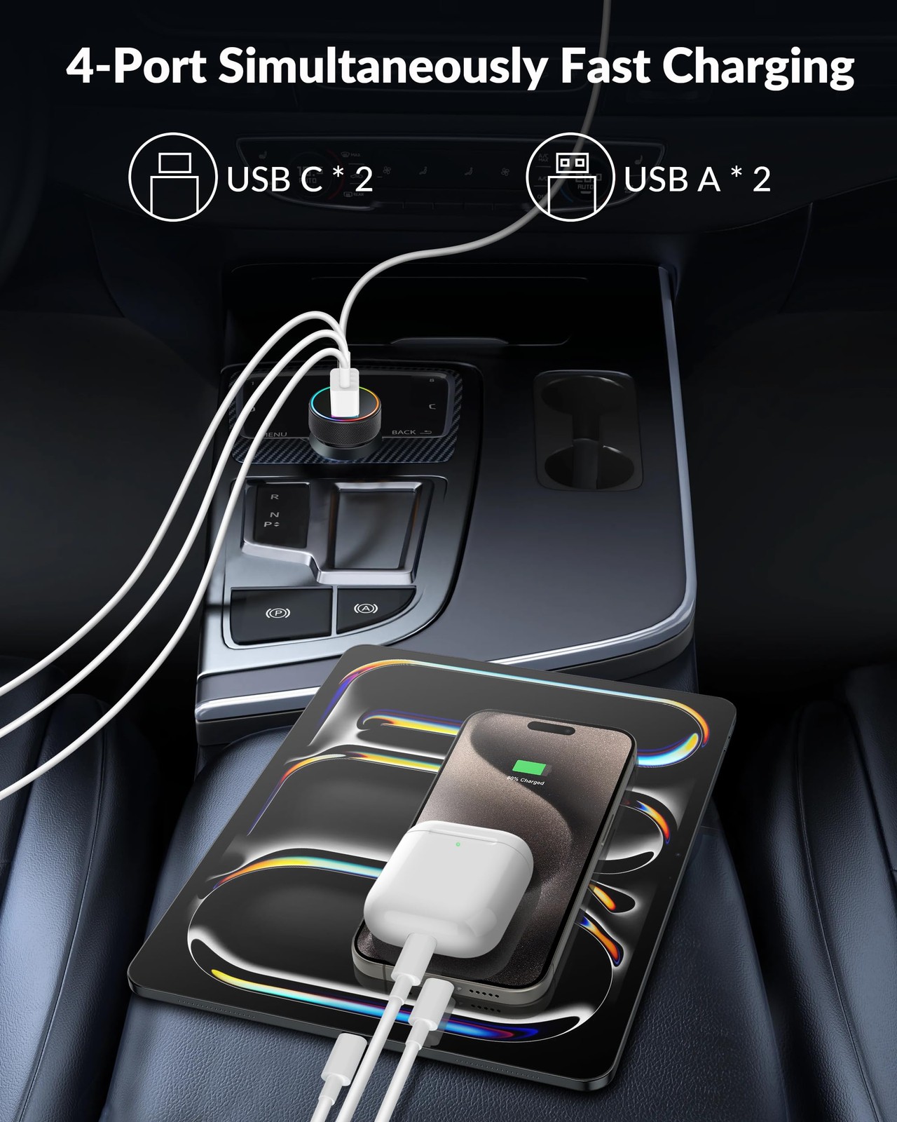 This car charger is a game-changer! With four ports (2 USB-C and 2 USB-A), it charges all my devices super fast—even my tablet hits full power in no time. The 90W output means no more waiting, and the compact design fits perfectly in my car. Perfect for road trips or daily commutes, it’s a must-have for anyone with multiple gadgets. No more slow charging or juggling cables—just plug and go!