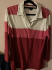 This vintage Burberry polo shirt is a must-have for any fashion-conscious woman. The multicoloured design with the iconic golf logo adds a touch of sophistication to any outfit. The long sleeves and size small make it a versatile piece that can be dressed up or down. Perfect for those who appreciate a timeless look. Very good condition