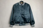90s Vintage Westark U.S. Navy Training School Satin Jacket L Navy Blue Features Specifications ```html 90s Vintage Westark U.S. Navy Training School Satin Jacket L Navy Blue Brand Name: Westark Product Type: Satin Jacket Model: U.S. Navy Training School Jacket Color: Navy Blue Material: 100% Nylon Size: L Condition: Used (some light stains on cuffs and waist ribbing) This authentic 1990s vintage Westark U.S. Navy Training School satin jacket is a must-have for collectors and enthusiasts alike. Made in the USA, this jacket features a classic design with a comfortable fit. The jacket has been gently used, showing some signs of wear, including light stains on the cuffs and waist ribbing, but it remains in good condition for continued wear. The measurements are as follows: Shoulder to Sleeve Length: 83.0 cm Underarm to Sleeve Length: 54.0 cm Chest Width: 64.0 cm Length from Back Collar: 68.0 cm Hem Length: 36.0 cm Don't miss out on this unique piece of vintage apparel—perfect for those who appreciate military history and 90s fashion! ```
