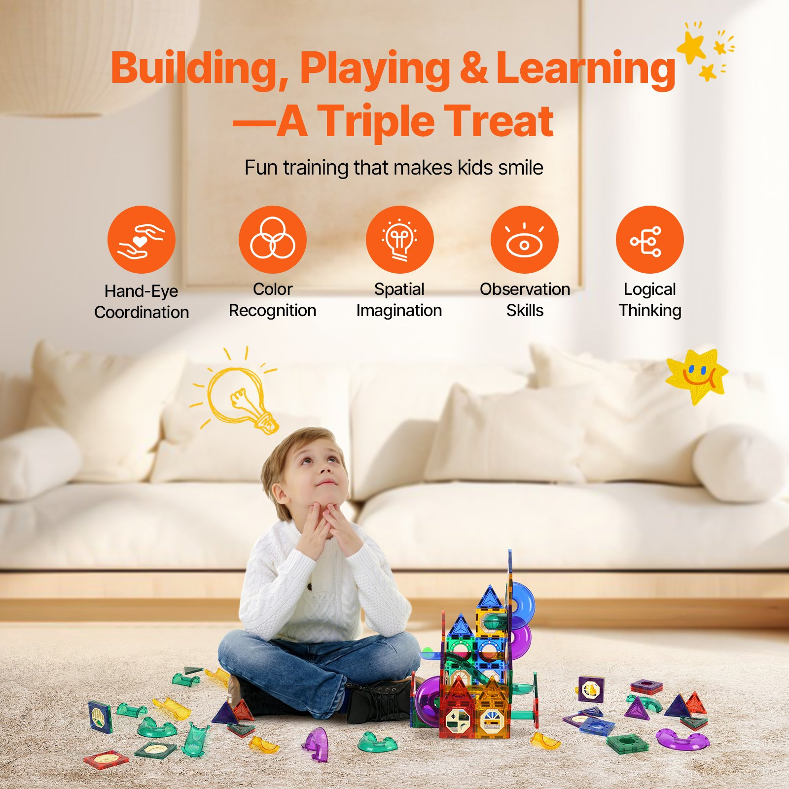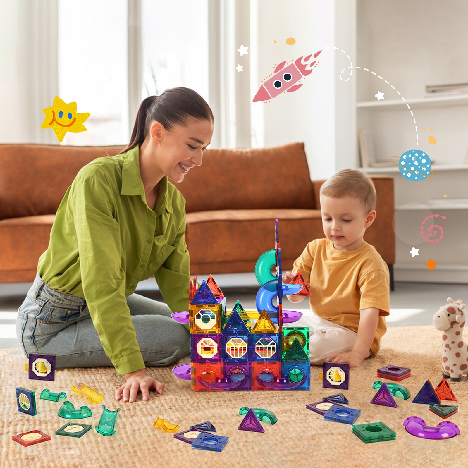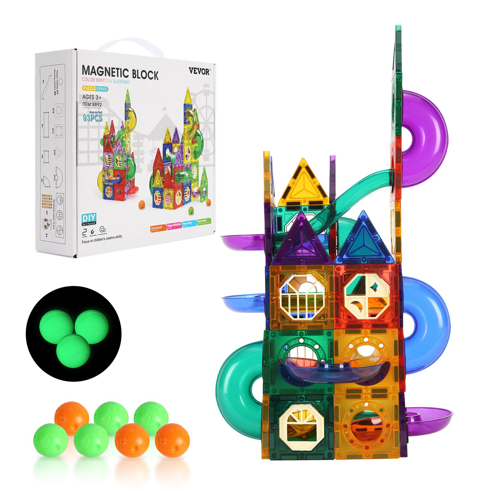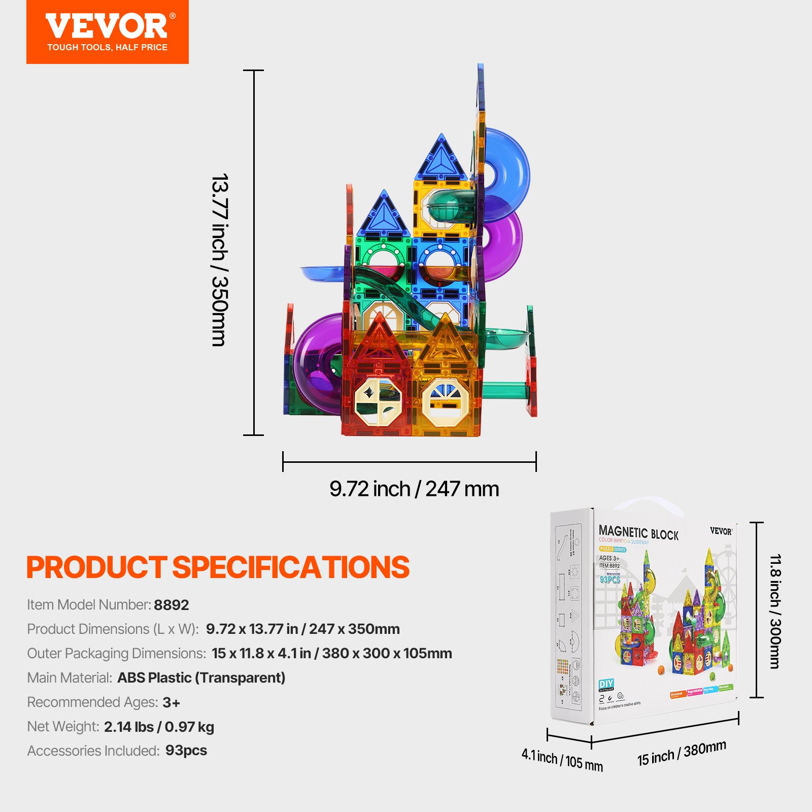 Magnetic Tiles Marble Run 93 PCS STEM Toy Educational Learning Game for Kids The Ideal Gift Deluxe Accessories Endless Fun Magnetic Building Play with Friends Safety First Item Model Number: 8892,Product Dimensions (L x W): 14.96 x 11.81 in / 380 x 300 mm,Outer Packaging Dimensions: 11.42 x 11.02 x 3.94 inches / 290 x 280 x 100 mm,Recommended Ages: 3+,Net Weight: 2.14 lbs / 0.97 kg,Main Material: ABS Plastic (Transparent)