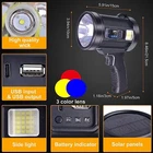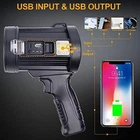 【Super Bright Large Searchlight 】Spotlight flashlights Built-in 9600mAh Battery Pack, can generate up to 90000 lumens light output,Irradiation distance is about 3280 feet(1000m), perfect for use hiking, camping, sailing or hunting outdoors, or emergency home light etcs. 【3 Main Lights Modes & 3 Side Modes】Most practical multi-functional spotlight has 3 main modes and 3 side light, front light (High -Meidum- Strobe), side light (High-Low-Safety warning light) . the warning light with red & blue light flash, which can be used as a searchlight or warning light in bad weather outdoor activities. Press and hold for 4-5 seconds to turn all off light. 【3 Charge Choice】Our solar flashlights include built-in battery USB input & output & solar, Come with a USB charging cable support rechargeable 100000 times, That's included USB Cable (4-5hrs) or by solar power (10-20hrs).The 3 blue indicator lights will show the battery situation (35%,65%,100%).USB output become power bank for your mobile phone, camera, digital product in emergency. 【IPX6 Waterproof & Durable】Super Bright flashlight ergonomic handles made of high quality ABS and aluminum alloy materials, upper tightness and IPX6 waterproof can easily handle water drops and other scratches you will encounter, Also with skid-proof, shock-proof, waterproof,rainproof, dustproof etcs advantages. 【Enjoy your 3 Color Filter】The spotlight also come with 3 color lens (red,yellow,blue), Made your own have 9 different lighting modes to indoor and outdoor activities, Put on the Blue /Yellow/Red filter both have 3 lighting modes (High - Medium - Strobe). 【Unique design】Handheld spotlight flashlight with one-touch off and power display. When you are ready to turn off the spotlight, you can simply press and hold the button for three seconds to achieve one-touch shutdown. When you turn on the LED spotlight, the power display light will automatically light up to show the real-time power level; you can also press the button next to the power display light to check the power level 【2 Years After-sale Service】Despite our best efforts, we still cannot guarantee that our led searchlights will be 100% trouble-free. So the rechargeable spot lights provide 7 x 24 hours customer service guarantee. If you receive a defective product, contact us and we will immediately send you a replacement unit for free. 【Upgraded switch Button & Package Kits】Press and hold for 4-5 seconds to turn off all lights. Spotlight kit include: 1 X Flashlight Spotlight, 3 X Filter (Red, Blue, Yellow),1 X USB Cable, 1 X Packing Box. Note: Item built-in 2pc 18650 rechargeable battery(4500mAh) Best gifts for men. The LED spotlight has has 3 main modes and 3 side light. Choose the appropriate lighting mode according to your needs. Solar spotlight is suitable for farm use, daily indoor work, and car emergency use. Nine hours full NEXTWOOD Solar Charging Spotlight We found that as an outdoor camping light, one must have an endless supply of power, so we added a solar charging panel to the outdoor spotlight, which made this searchlight one of the hottest in the entire category of outdoor handheld spotlights in the second half of 2022. This is an all-round spotlight, it can be used as a handheld flashlight, searchlight, handheld spotlight, camping light, fishing light, table lamp, desk lamp. Product main function Additional features of the product Xhp70 chip This high-power spotlight is with a xhp70 chip, stable and bright, it has a powerful output, message clearly illuminate the objects within 3260ft. 9600mAh battery Built-in large rechargeable 9600mah battery, the flashlight can be used for up to 8 hours, lighting time up to 30 hours in low lighting mode. Radiator Cup Spotlight uses an upgraded radiator cup. Prevent LED lamp beads from being damaged during use, reduce flashlight temperature and power consumption. Add 3 color filters With red, blue and yellow filters. You can switch between different lighting colors by putting on the corresponding color filter. The spotlight is equipped for a variety of scenes, is a must for home, outdoor.