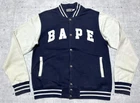 A Bathing Ape Pirate Varsity Sweatshirt Big Logo University Jacket Used Key Features **A BATHING APE PIRATE Varsity Jacket** - **Brand:** A BATHING APE - **Product Type:** Sweat Varsity Jacket - **Model:** Pirate Design - **Color:** Navy and White - **Material:** 100% Cotton - **Size:** L (Measurements: Shoulder Width 47 cm, Chest Width 54 cm, Length 66 cm, Sleeve Length 68 cm) **Condition: C** - Noticeable red stains on the white collar. - Stains on the left sleeve and similar marks on the right sleeve. - Yellowing on white areas. - Overall fading present. - Despite these issues, the jacket remains usable. **Additional Notes:** - This is a used item; please understand that minor damages not listed may exist. - Measurements are taken flat and may have slight discrepancies. - Colors may vary slightly due to lighting and monitor settings. Specifications Brand A Bathing Ape Country Japan Type Jacket Size L Size Type Big & Tall Department Men Color multicolor Product Description Item Title A Bathing Ape Pirate Sweatshirt Varsity Payment Supports managed payments Please pay within 5 days after auction is finished. About Us We are located in Japan. It's our pleasure to make you happy by proposing our recommend item. If you have any questions or request about items, please feel free to ask us. International Buyers - Please Note: -Import duties, taxes, and charges are not included in the item price or shipping charges. These charges are the buyer's responsibility. -Please check with your country's customs office to determine what these additional costs will be prior to bidding/buying. -These charges are normally collected by the delivering freight (shipping) company or when you pick the item up - do not confuse them for additional shipping charges. -We do not mark merchandise values below value or mark items as - gifts - The US and International government regulations prohibit such behavior. Thank you for your understanding.