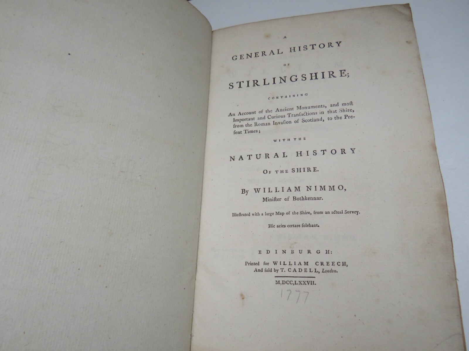 A General History of Stirlingshire With Natural History of the Shire By William Nimmo 1777 Title - A General History of Stirlingshire With Natural History of the Shire Author - William Nimmo Publication Date - 1777 Publisher & Place - Edinburgh William Creech Pages - 525 Height of book - 23.2 cm Format - Hardback Condition - Book has been rebound nicely. Private library sticker inside. Some