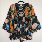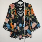 Elevate your wardrobe with the a.moon Women's Kimono, a versatile piece that brings a touch of bohemian elegance to any ensemble. The design features an alluring black base adorned with a large floral pattern, making it a perfect accessory for those who appreciate nature-inspired aesthetics. With its 3/4 dolman sleeves and open-front style, it offers a relaxed fit that's ideal for casual outings, travel, or even adding a flair to your party wear. Crafted from polyester woven fabric, this kimono ensures breathability and comfort for all seasons. Delicate crochet accents complement the garment's airy feel, while the collarless feature adds a modern twist to the traditional neckline. Embrace the blend of timeless style and contemporary fashion with this must-have item from a.moon's collection. The photographs show the most important measurements to make it easier for you to make the purchasing decision based on the fit to your size. The piece is in very good condition, almost like new, without stains or breaks or obvious signs of use. If you have any questions you would like to ask us about this item, please do not hesitate to contact us and we will be happy to help you as soon as possible. In any case, you can buy with peace of mind in our store because we accept returns on all our items, so your money is safe. We process orders quickly, generally the items are sent the same day or the next day at the latest and as soon as they are sent you are informed of the tracking number so that you have full control of your purchase. As you can see, we strive to make your purchasing process as pleasant and simple as possible. Don't hesitate and add this beautiful pearl to your collection!