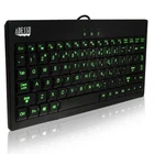 The AKB-110EB 3 Color Illuminated Mini Keyboard is the perfect for those who find themselves working late at night in dim or dark lighting environments. This keyboard features Illuminated backlit keys in 3 colors: Green, Blue and Red which can be accessed quickly and conveniently with a touch of a button. Dim, brighten or turn of the brightness of your backlit keys easily with the shift key. Measuring less than 12” wide, it is also ideal for POS stations, sales or information kiosks, warehouses or any small working environment. The AKB-110EB 3 Color Illuminated Mini Keyboard is designed with membrane key switches that provide a quieter and faster typing response and stand up to long-term usage Illuminated Backlit Keyboard allows you to work day and night, while easing eyestrain and helping you see the correct keys in any lighting environment; For business, the small footprint keyboard is perfect in dimly light showrooms, warehouses or offices 2X Size Large Print Keys: Large 2X bright white letters provide excellent contrast over traditional keyboards that have small white letters on black keys Compact Size: This keyboard is only 11;75" wide and is designed with a Windows Key layout that includes an embedded numeric keypad; This keyboard is a great space saver for your home or office Quiet Membrane Key Switches: Membrane key switches provide a better tactile response and a quitter typing experience; Plus they last up to five million keystrokes.Connectivity Technology: USB