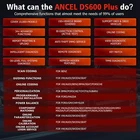 ANCEL DS600+ Full System Car Diagnostic Scan Tool Automotive Scanner Tablet Wifi Bluetooth with 34+ Special Functions ECU Coding Bi-directional + 2 Year Free Update Online + Android 10.0 + Multi Languages Supported + 2GB RAM+32GB Storage ANCEL DS600,based on the Android 10 System,is a new generation of modular high-end intelligent diagnostic equipment developed by ANCEL,featuring fully updated software's and powerful design of widespread vehicle coverage, abundant professional diagnostic features and exceptional hardware configuration etc., is the ideal scanner for professional mechanics and auto repair stores to perform all-around fixes and comprehensive tests. ANCEL DS600 OBD2 Full System Diagnostic Scanner Professional To diagnose Brake System if you feel the brake pedal is mushy and notice unusual odor or noise, etc. A properly operating brake system is critical to ensure safe vehicle control and operation; To diagnose Emission System if the system is affected by vehicle age or poor quality fuel. A good emission system reduces harmful gases to a large degree and protects you from being fined; To diagnose Fuel system if vehicle won’t start or “Check Engine” light is illuminated. Check car’s fuel system regularly ensures the best performance of your car with the lowest emissions; To diagnose Transmission if your car is slipping or difficult to shift. The system plays an important part in the overall performance of your car; To diagnose Wiper System if you observe chattering or streaking wiper. If the car is not regularly checked, the accident might happen because you can’t see clearly; To diagnose Light System if you see rapid signal blinking or dimming lights. And many more ... Multi-languages Support Italian, English,German, Japanese, Russian, French, Spanish, Portuguese, polish, Turkish, Dutch, Greek, Hungarian, Arabic, Danish, Korean, Persian, Romania, Serbia, Finnish, Swedish, Czech,Chinese(traditional) ANCEL DS600 Support 34+ Special Functions 1.Oil Reset The lightening of the car maintenance light indicates that the vehicle needs maintenance.Reset the mileage or driving time to zero after the maintenance,so the maintenance light will go out and the system will start a new maintenance cycle. 2.D-P-F Regeneration D-P-F Regeneration is used to clear PM(Particulate Matter)from the D-P-F filter through continuous combustion oxidation mode(such us high temperature heating conbustion,fuel additive or catalyst reduce PM ignition conbustion)to stabilize the filter perfornance. D-P-F regeneration may be performed in the following cases: a)The exhaust back pressure sensor is replaced. b)The PM trap is removed or replaced c)The fuel additive nozzle is removed or replaced d)The cataytic oxidizer is removed or replaced. e)The D-P-F regeneration MIL is on and maintenance is performed. f)The D-P-F regeneration control module is replaced. 3.AFS(headlamp) Reset The feature is used to initialize the adaptive headlamp system.According to the ambient light intensity,the adaptive headlamp system may decide whether to automatically turn on the headlamps,and timely adjust the headlamp lighting angle while monitoring the vehicle speed and body posture. 4.E-G-R Adaption This function is used to learn the E-G-R(Exhaust Gas Recirculation)valve after it is cleaned or replaced. 5.Brake-pad Reset If the brake pad wears the brake pad sense line,the brake pad sense line sends a signal sense line to the on-board computer to replace the brake pad.After replacing the brake pad,you must reset the brake pad.Otherwise,the car alarms. Reset must be performed in the following cases: a)The brake pad and brake pad wear sensor are replaced. b)The brake pad indicator lamp is on. c)The brake pad sensor circuit is short,which is recovered. d)The servo motor is replaced. 6.IMMO Service To prevent the car being used by unauthorized keys,the anti-theft key matching function must be performed so that the immoblizer control system on the car identifies and authorizes remote control keys to normally use the car.When the ingnition switch key,ignition switch,combined instrument panel,ECU,BCM,or remote control battery is replaced,anti-theft key matching must be performed. 7.Windows Calibration This feature is designed to perform door window matching to recover ECU initial memory,and recover the automatic ascending and descending function of power window. 8.Coolant Bleeding Use this function to activate the electronic water pump before venting the cooling system. 9.Steering Angle Reset To reset the steering angle,first find the relative zero point position for the car to drive in straight line.Taking this position as reference,the ECU can calculate the accurate angle for left and right steering.After replacing the steering angle position sensor ,replacing steering mechanical parts(such as steering gearbox,steering column,end tie rod,steering knuckle),performing four-wheel alignment,or recovering car body,you must reset the steering angle. 10.Injector Coding Writing injector actual code or rewrite code in the ECU to the injector code of the corresponding cylinder so as to more accurately control or correct cylinder injection quantity.After the ECU or injector is replaced,injector code of each cylinder must be confirmed or re-coded so that cylinder can better indentify injectors to accurately control fuel injection. 11.Seat Calibration This function is applied to match the seats with memory function that are replaced and repaired. 12.Transport Mode In order to reduce power consumption,the following functions may be disabled,including limiting the vehicle speed,not waking up the door opening network,and disabling the remote control key,etc.At this time,the transport mode needs to be deactivated to restore the vehicle to normal. 13.Battery Matching This function enables you to perform a resetting operation on the monitoring unit of vehicle battery,in which the original low battery fault information will be cleared and battery ma