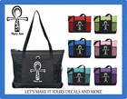 THIS LISTING IS FOR A ZIPPERED TOTE WITH ANKH CROSS DESIGN WITH NAME DESIGN IS HEAT PRESSED VINYL AND WILL BE DONE IN WHITE AVAILABLE TOTE COLORS: RED, BLUE, GREEN, PINK, TURQUOISE, BLACK, AND PURPLE FEATURES: 20"W x 14"H x 4"D Back panel is Black Two side mesh pockets Front pocket with pen loop Zippered main compartment We do take design request so if you have something in mind please feel free to ask. We will see what we can do for you. This is a made to order item. Please allow up to 5 days for us to make the item. We try our best to get items out as fast as possible. We appreciate your patience. Be sure to stop in our store. We have other designs listed as well as many other homemade items. Garden flags, wall decals and more. We also sell new, used, vintage, collectibles, home goods, videos games and much more. Be sure to check us out!! If there's ever a problem with your product please contact us prior to leaving negative or neutral feedback. We strive for a 5 star experience. Thank you!