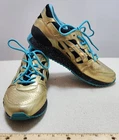 ASICS Gel-Lyte III GS GOLD & TEAL ATHLETIC RUNNING SHOES Size Women 5 / 37.5 ASICS Wale x Villa x Gel Lyte 3 Intercontinental Champion This Asics Gel-Lyte III features a metallic gold and black upper, a black midsole with blue speckles, and a blue rubber outsole. Shoes are in pre-owned condition with light wear. Shoes are overall in great condition. Please check out the photos and ask any questions before bidding. All Sales Final Happy Bidding........Shipping by mail. Buyer to contact and make payment by Paypal within 3 days.