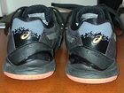ASICS Women's Black Sneakers Shoes 1042A122 Size 9 are tennis shoes designed for women. They feature a lace-up closure, fabric upper material, and man-made lining material. The shoes have a B width and M shoe width. They are suitable for activewear and tennis sports. The shoes come in black color and are not vintage. The insole material is fabric, but the user mentioned that they need insoles.