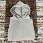 This is an ASRV men's hoodie in size Small. It is a taupe-colored pullover hoodie made from heavyweight terry cloth fabric. The hoodie features a reverse weave design and is suitable for a regular fit. The design is inspired by a space theme, making it a unique and stylish choice for casual wear.