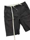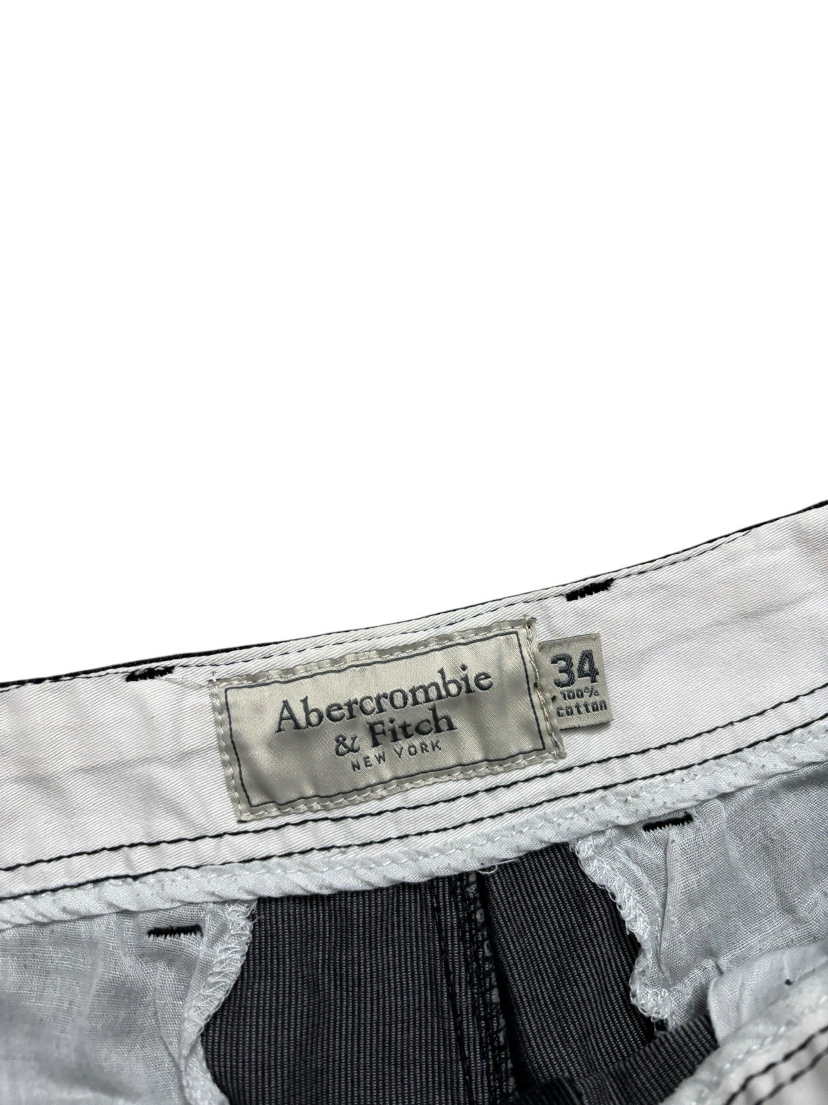 Missing back pocket button. These Abercrombie & Fitch men's shorts in size 34 are a stylish and versatile addition to your wardrobe. The charcoal black color and woven cotton fabric give them a classic and preppy look, perfect for casual occasions or travel. With a 10" inseam and a mid-rise waist, these Bermuda-style shorts offer a comfortable fit for all-day wear. Complete with a 5-pocket design and machine washable care instructions, these shorts are a must-have for the summer, fall, and spring seasons.