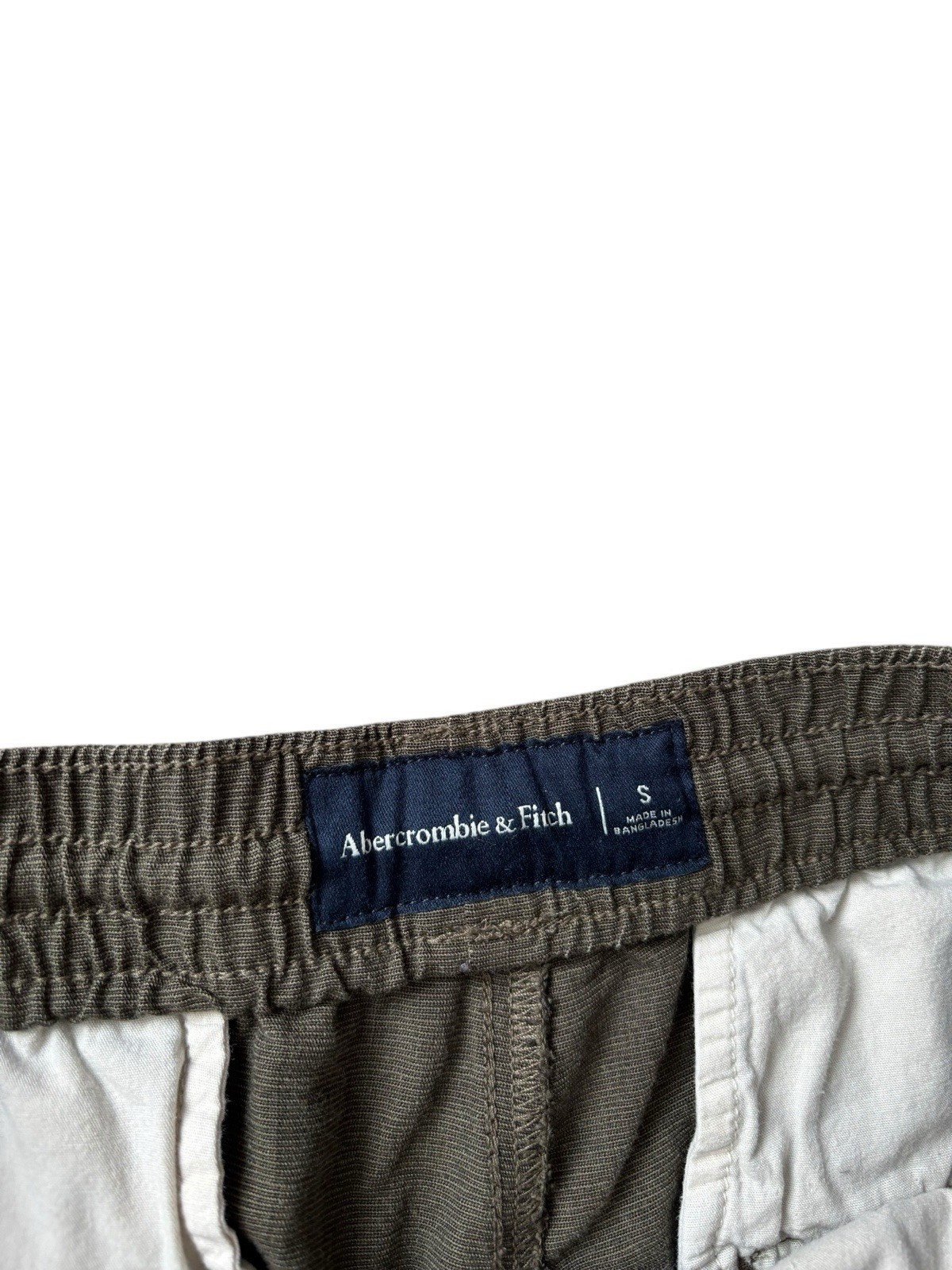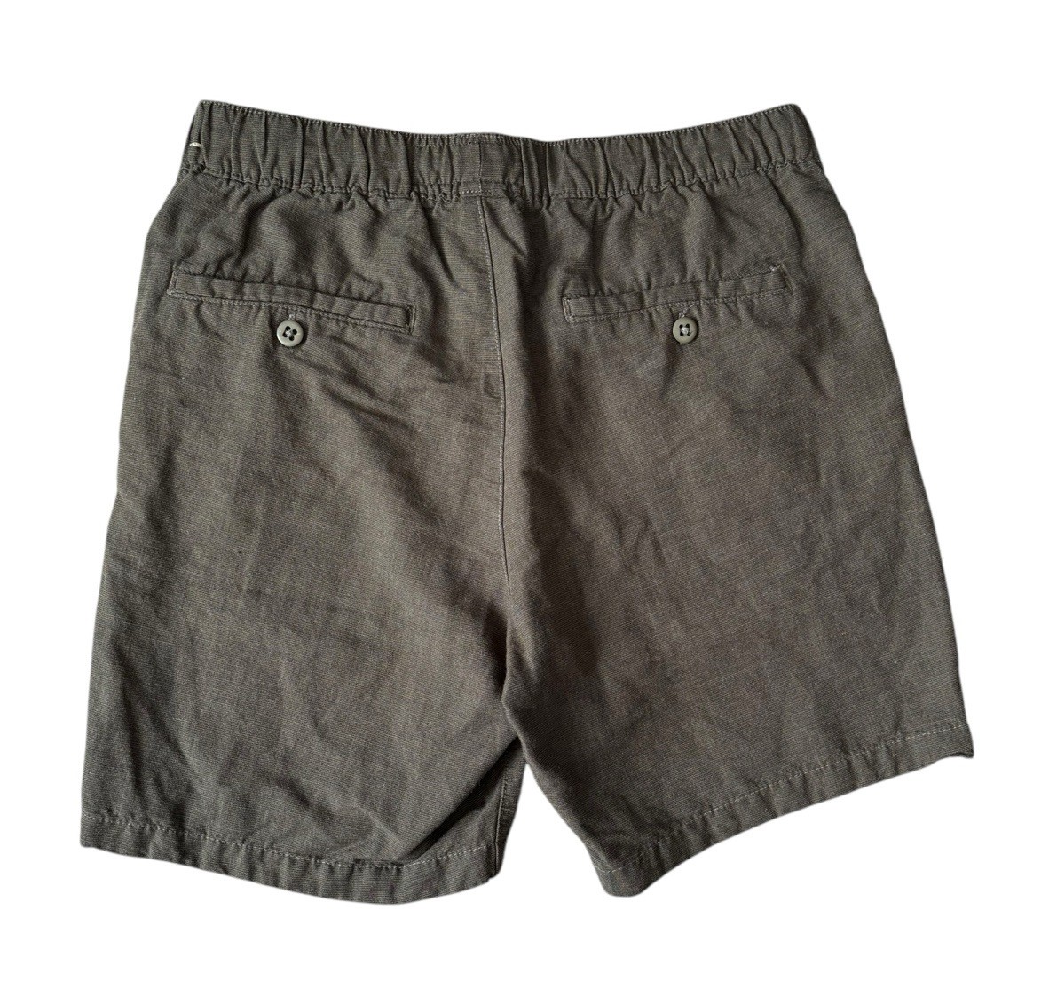 These Abercrombie & Fitch men's small dark olive linen cotton dock shorts are perfect for travel or casual occasions during the summer, fall, or spring seasons. The woven fabric blend of viscose, linen, and cotton ensures comfort and durability, while the drawstring closure and elastic waistband provide a personalized fit. The mid-rise and flat front design with a 7-inch inseam offers a modern and versatile style suitable for a variety of outfits. The solid green color and classic pockets add a touch of sophistication to this wardrobe staple from the reputable Abercrombie & Fitch brand.