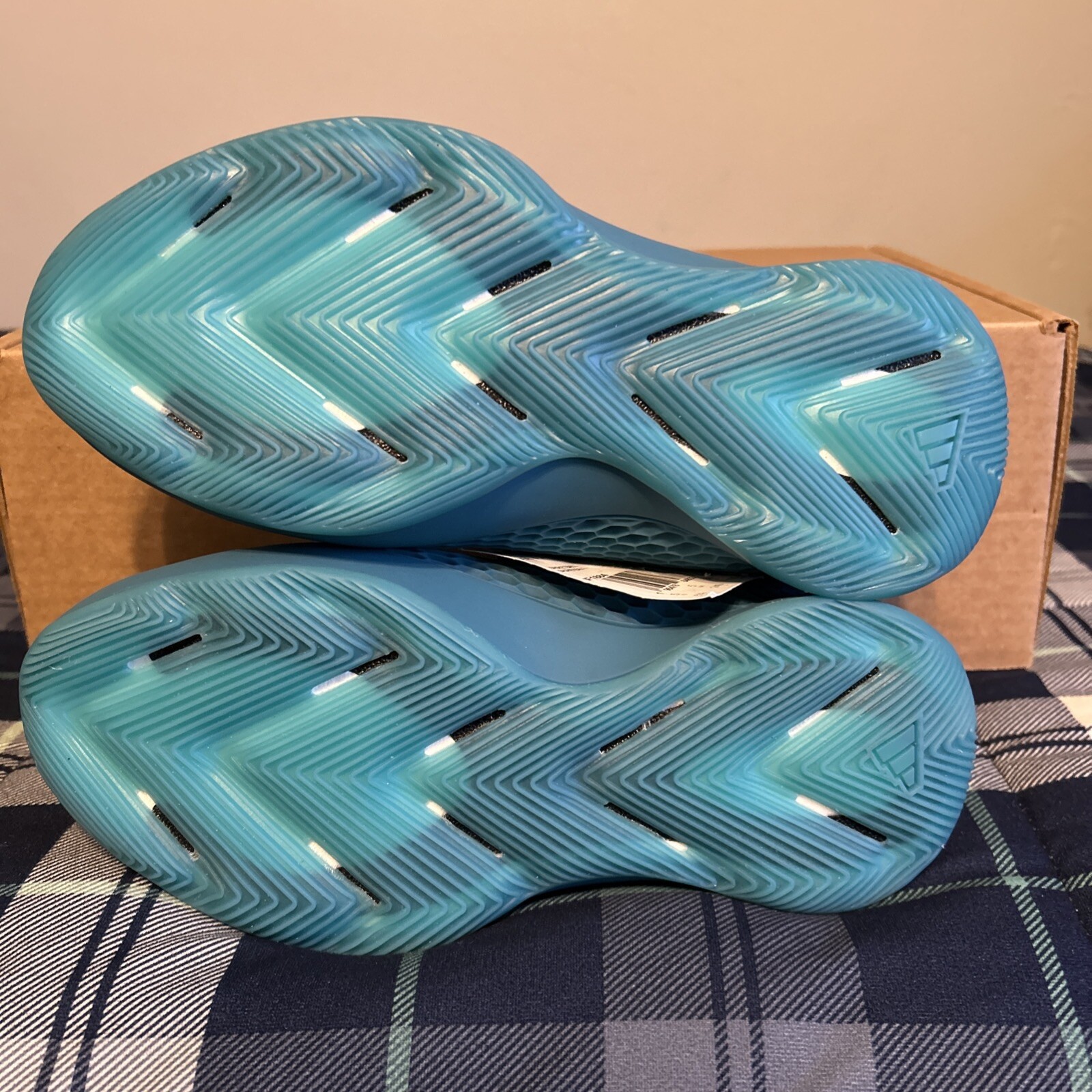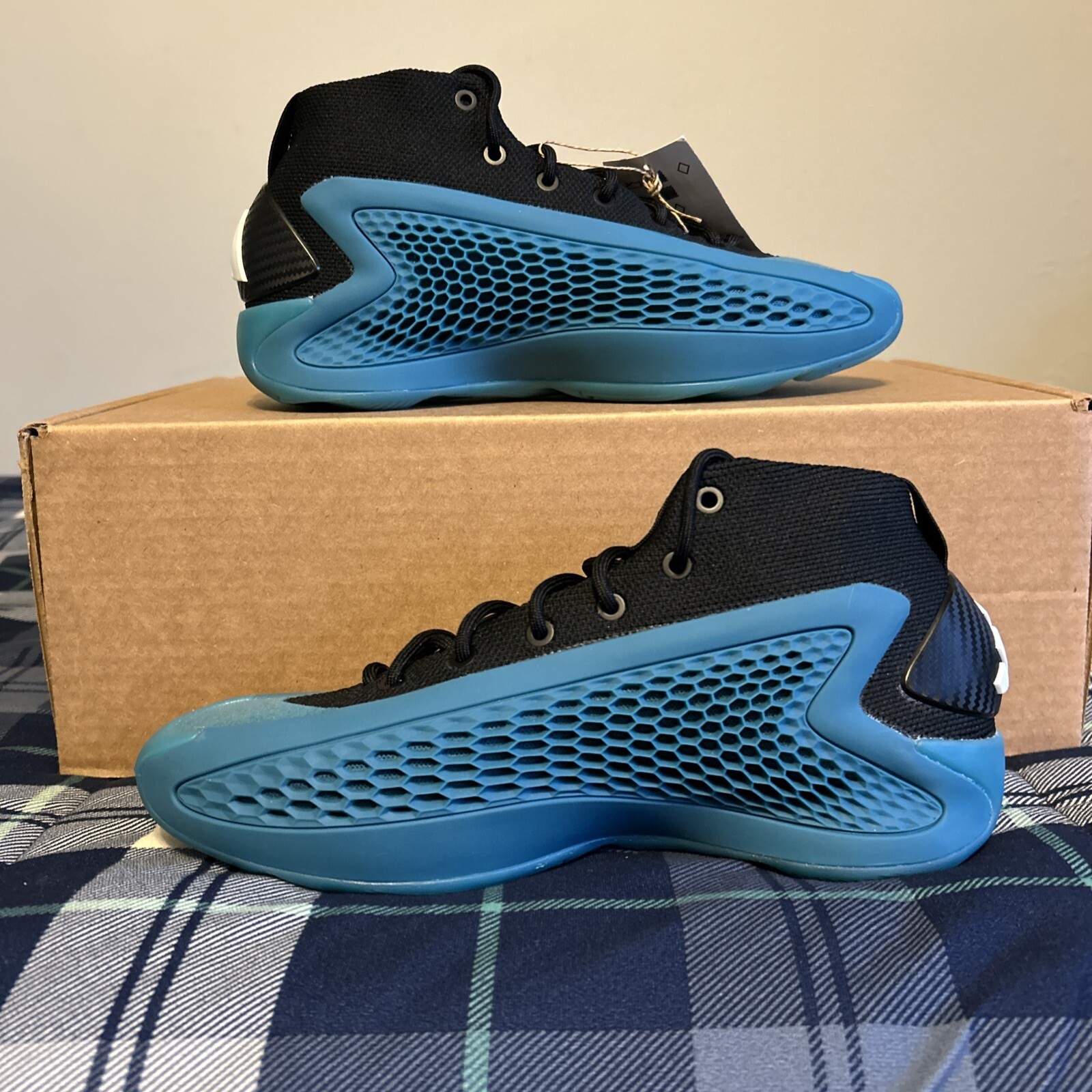 Elevate your style with these stunning Adidas AE 1 J “New Wave” Blue Colorway sneakers. The shoes are brand new with the original box and are made of high-quality synthetic materials. They feature a lace-up closure, arch support, and a moderate cushioning level, making them perfect for activewear, party, or casual occasions. The shoes have a flat outsole with a rubber cleat type, and the insole is made of a foam material for added comfort. The lining material is cotton, and the shoes are available in size 6.5Y GS. They have a solid pattern with blue and vision characters, and the Adidas logo is displayed on the shoes. These sneakers are perfect for walking, school, and basketball.