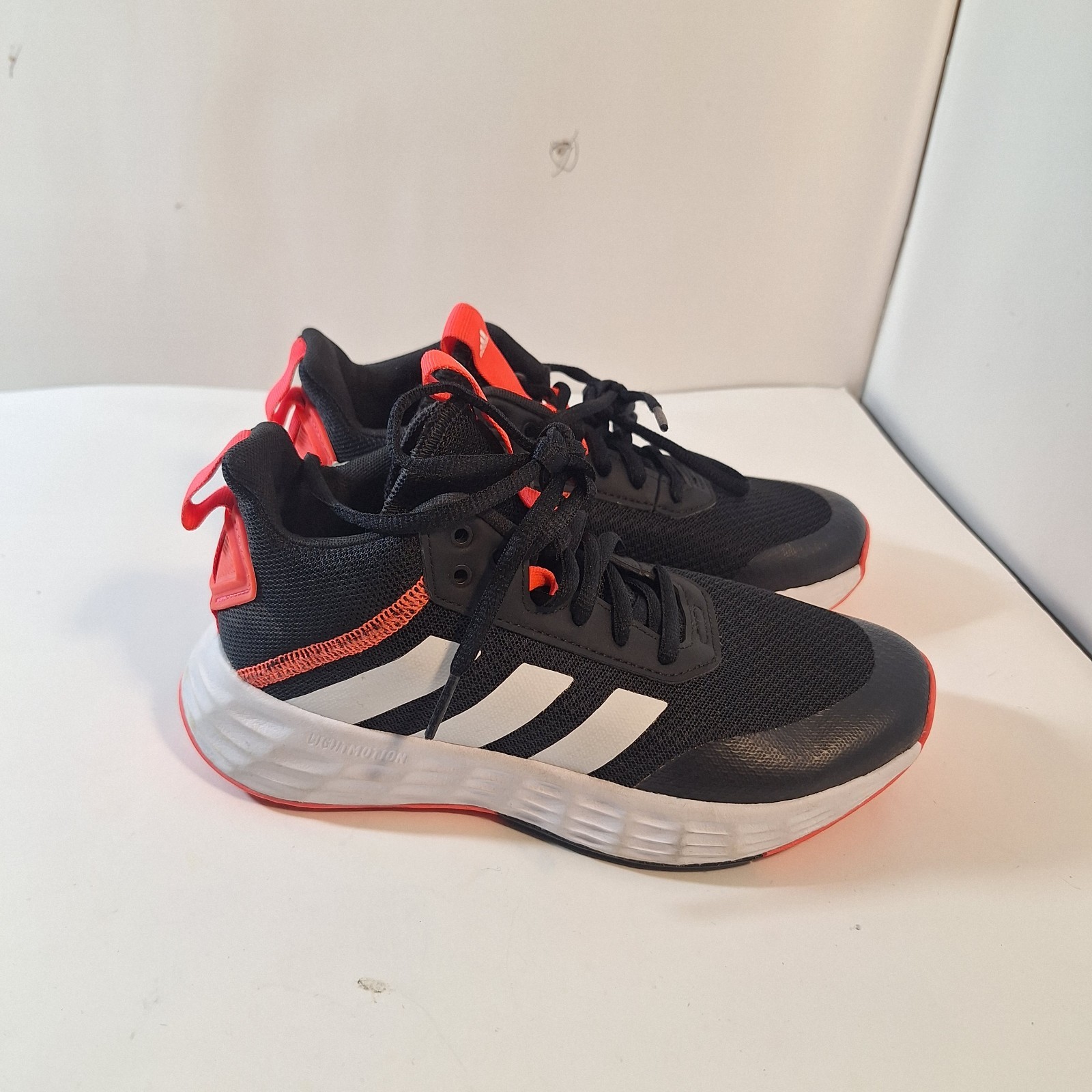 The product is a pair of Adidas court shoes in size 6 for boys. They feature a classic black, red, and white color scheme that is perfect for athletic activities. The sneakers are designed for active boys and are part of the Adidas Court product line, known for their quality and style. Perfect for sports or casual everyday wear, these sneakers will provide comfort and support for young athletes.