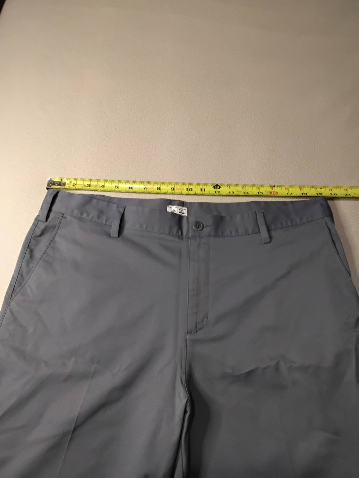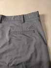 These Adidas Men's Shorts in gray, size 38, are perfect for travel and casual occasions. Made from polyester with a chino fabric wash, they feature a button closure, flat front, and a mid-rise fit. The stretch material ensures comfort, while the 10-inch inseam is ideal for summer, fall, and spring seasons. Machine washable for easy care, these shorts from Adidas are a stylish and practical addition to any man's wardrobe.