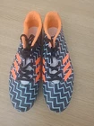 This Adidas Sprintstar Track Shoe is designed for women and is a size 9. It is a multicolor athletic sneaker made of 100% cotton. The shoe is missing spikes on one side, which may need to be replaced for optimal performance. The shoe is part of the Adidas Sprintstar product line, perfect for track and field activities.
