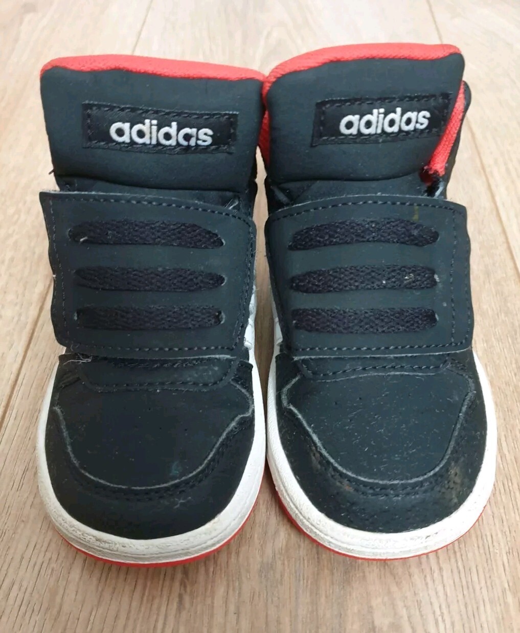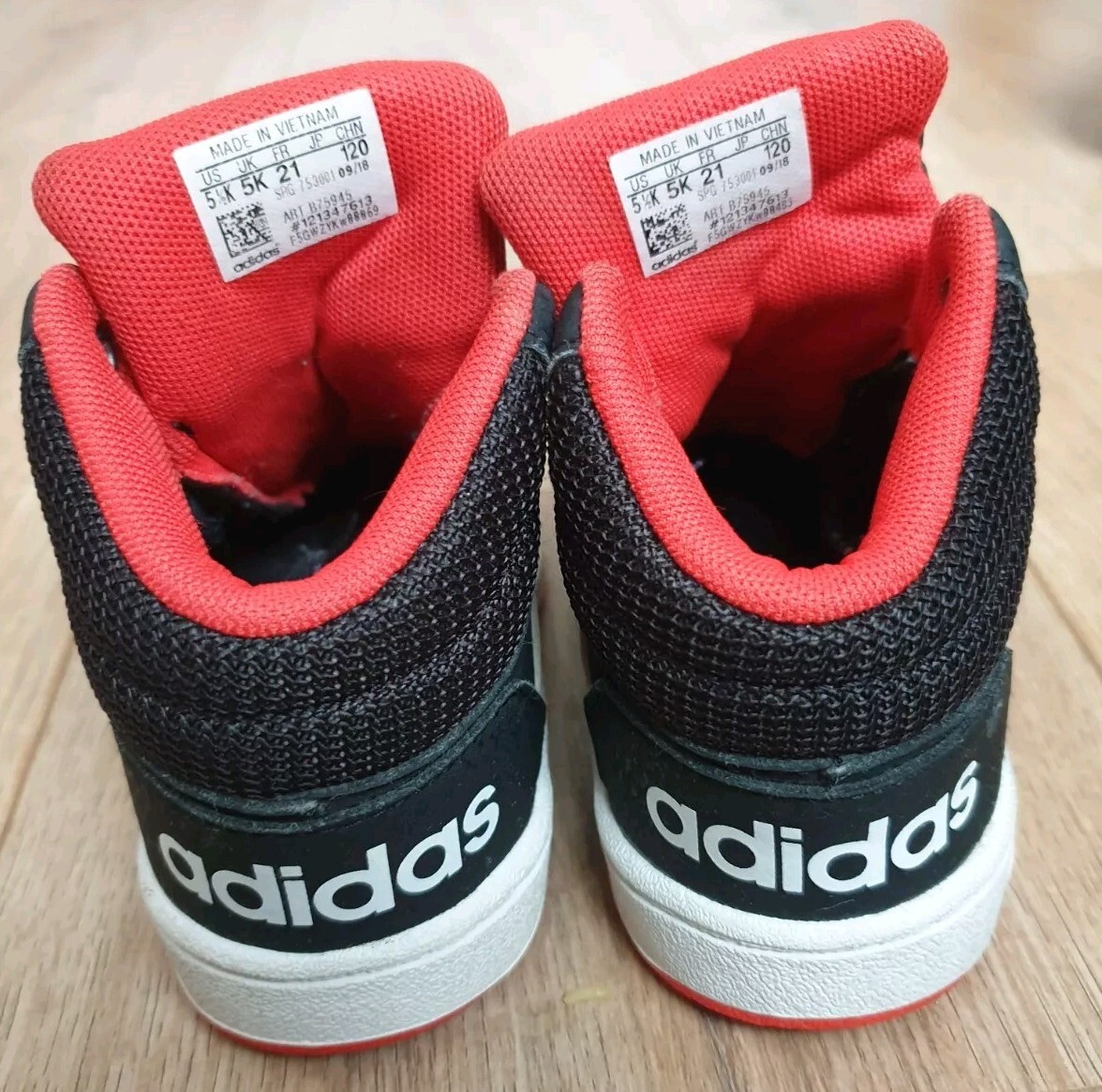 Adidas Toddler Shoes - Size UK 5K - Black & Red - Preowned, Very Good Condition Condition: Preowned, in very good condition with minimal signs of wear. Soles are clean with slight signs of use. Velcro straps and stitching are intact. No major stains or damage. Features: Brand: Adidas Size: 5K (US) / 5K (UK) / 21 (FR) / 120 (CHN) Color: Black with red accents Closure: Adjustable Velcro straps for easy wear Material: Durable synthetic and textile upper Made in Vietnam These shoes are perfect for active toddlers, providing comfort, support, and a trendy look. Ships from a smoke-free and pet-free home.