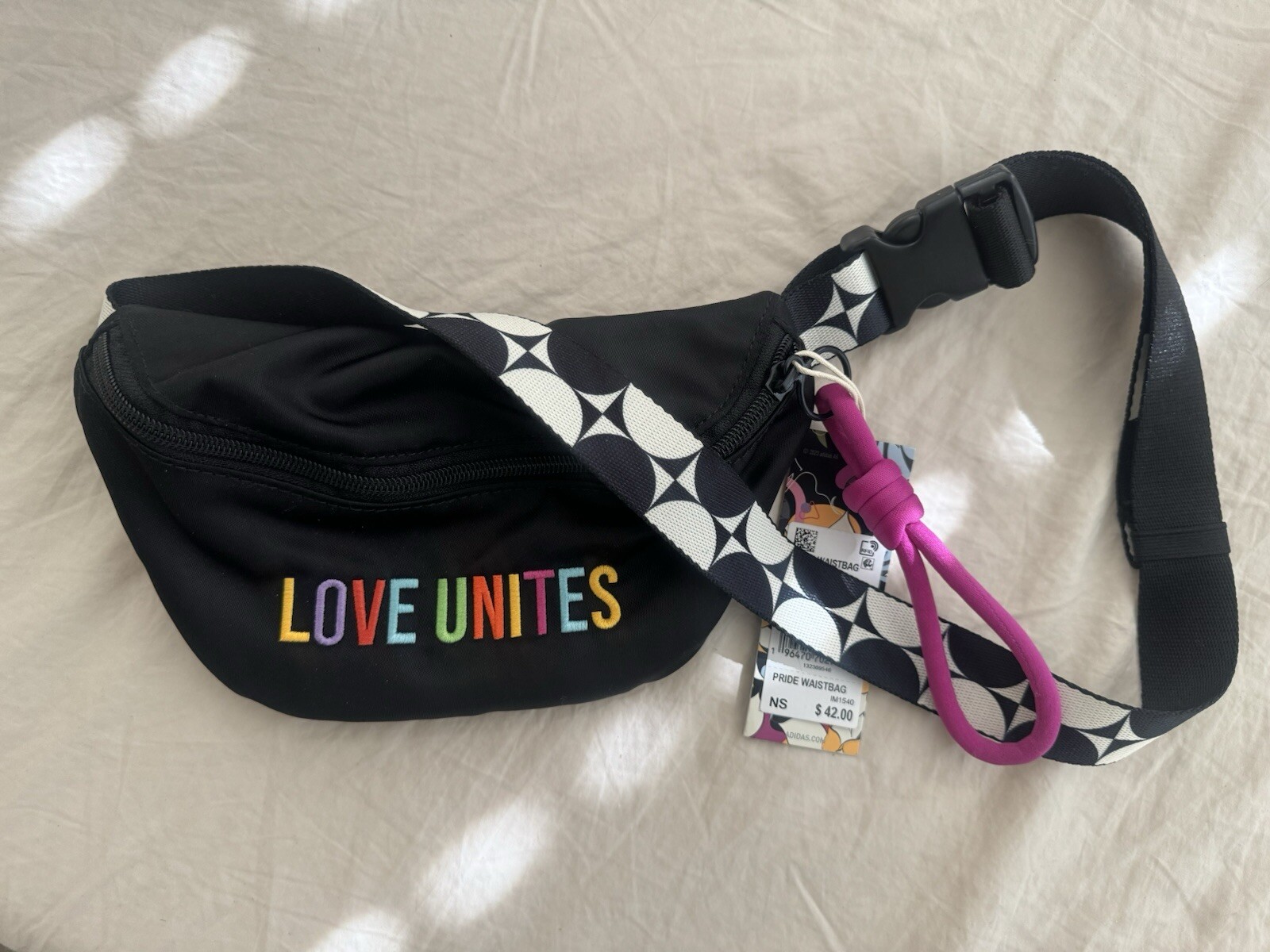 Brand NEW! ADIDAS X RICH MNISI WAIST BAG! adidas x Rich Mnisi Pride Collection. Zip your phone, keys and wallet into this adidas waist bag and go about your day with your hands free. The adjustable strap can be cinched around your waist or worn over your shoulder.