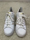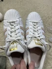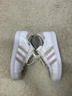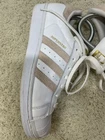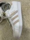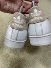 Adidas superstar Womens size 8.5 sneakers white leather With Pink Suede Stripes