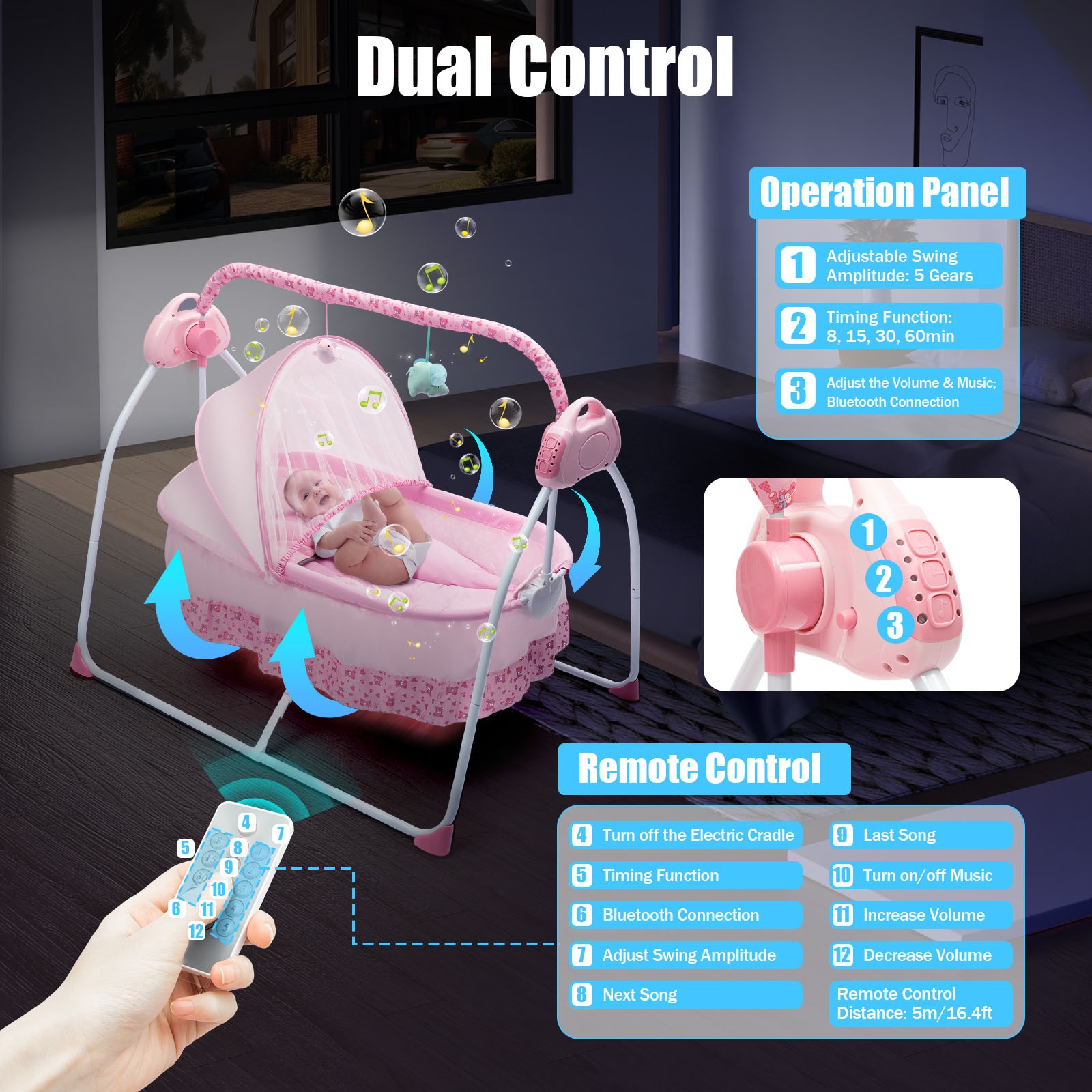 Baby Crib Cradle Auto Swing Rocking Bassinet 5 Gears Adjustable & Remote Control