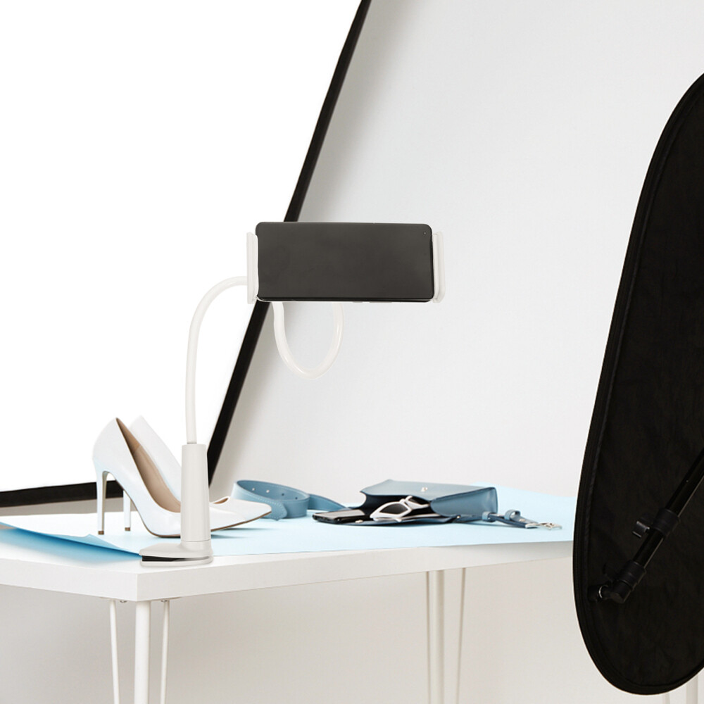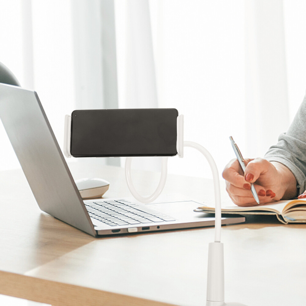 This gooseneck phone and tablet holder is a game-changer! The flexible arm stays firmly in place, letting me position my device perfectly for hands-free viewing. It clamps securely to desks, headboards, or car seats without wobbling. The strong grip holds even my heavy tablet steady. Super convenient for video calls, recipes in the kitchen, or watching shows in bed. The 360° rotation means perfect angles every time. Sturdy yet lightweight, it folds up small when not in use. For the price, the build quality is impressive - no loose joints or weak clamps. A must-have for anyone who uses their devices while multitasking!