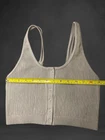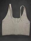 This Aerie ribbed cropped tank top combines sustainability with style. Part of Aerie’s Real Good line, it’s crafted with 70% recycled nylon, making it an eco-friendly choice. The top features a neutral gray color, soft ribbed texture, and functional button-front closure, ideal for lounging or casual outfits. Features: • Sustainable materials • Thick supportive straps • Cropped, form-fitting silhouette • Great for layering, lounging, or casual wear