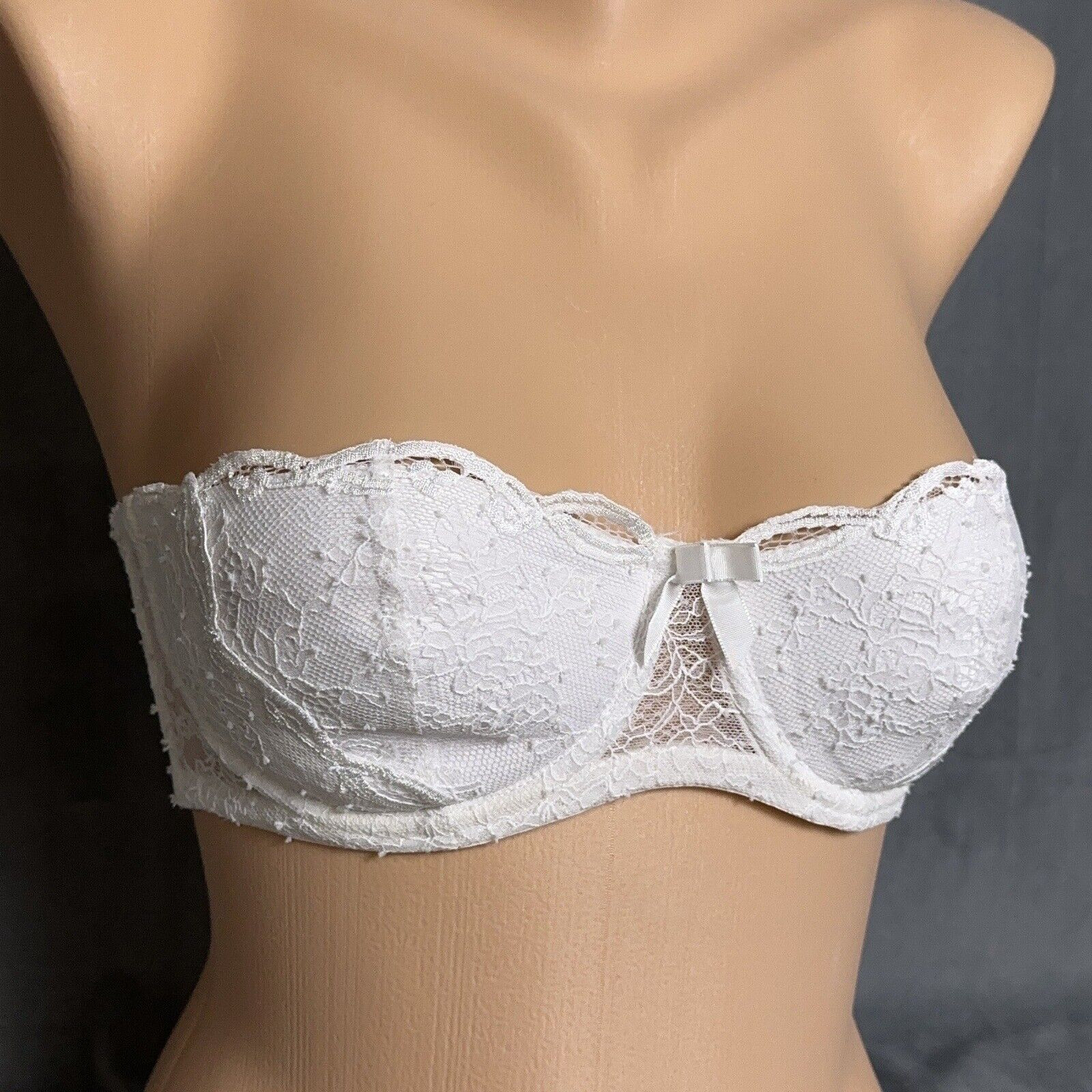 Listed is an Agent Provocateur Classics Love Strapless Bra White, style 26888. Gorgeous white with removable pads inside soft mesh inside cups. Gel edge around inside to help stay up. Size: US 32C (Canada/UK also 32C) Hook and Eye Closure: 2 Row(s) 3 Column(s) Underwire: Yes Condition: New with tags, bag with straps that can be added still attached. Retail $190. Thank you for looking!