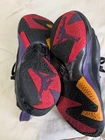 The product is a pair of Air Jordans 6Y Youth in black and red, featuring a round toe shape, lace-up closure, and rubber outsole. These sneakers are great for your son's sports and school fashion needs. Made with a blended fabric upper and foam insole, they are part of the Air Jordan product line and have a retro feel.