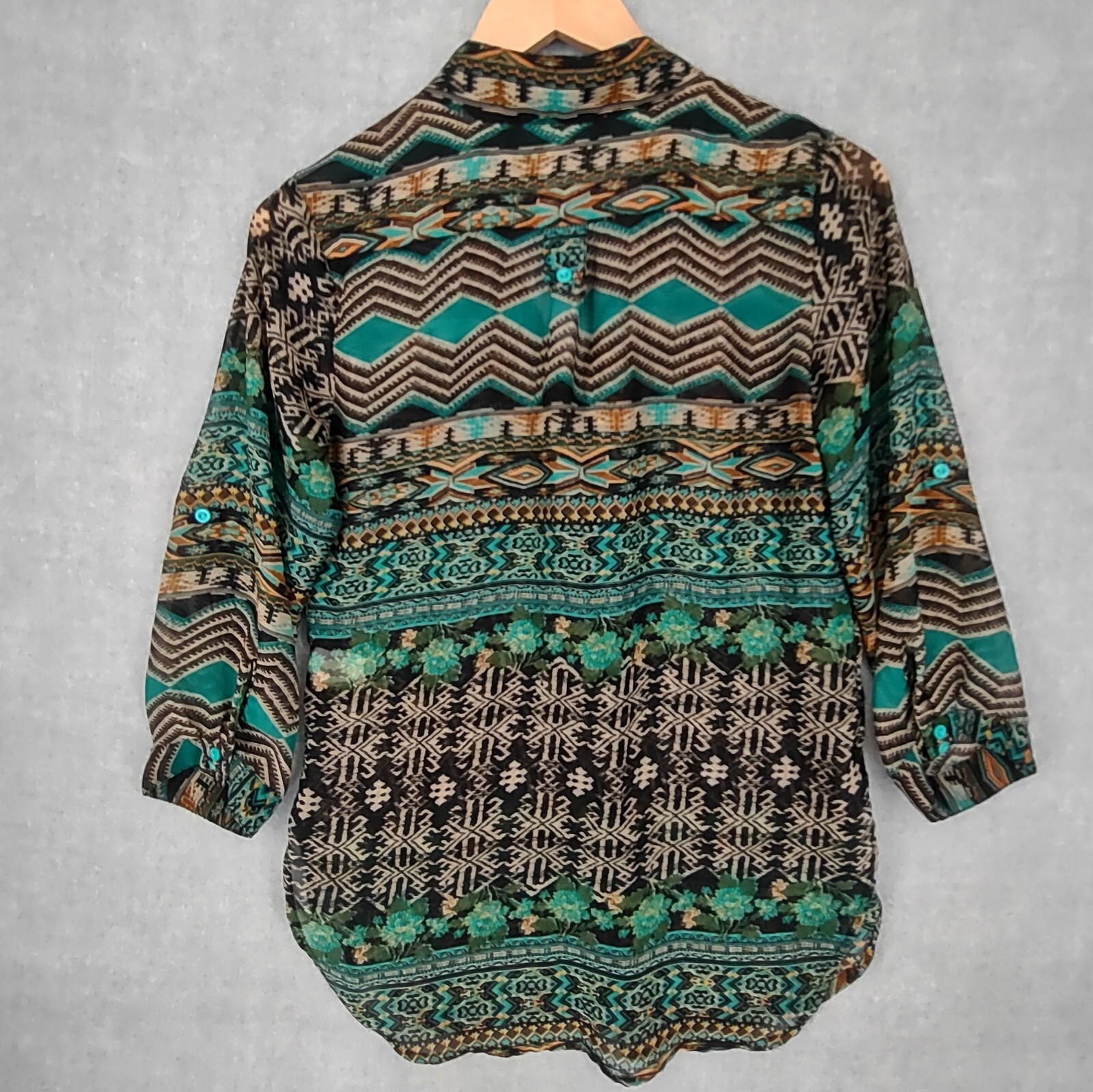 Akira Top Womens Small Multicolor Chiffon Henley Bohemian Southwestern Tunic Roll Tab Sleeve 26" LENGTH: Measured from the top of the shoulder to the hem. 18.5" CHEST WIDTH: Underarm to underarm, measured flat from left to right. Roll tab sleeve It is always best to compare the measurements above with a top that fits you comfortably. CONDITION - Excellent pre-owned condition. All items are cleaned per EBAY standards. Not spot treated. See the photo gallery to view this items measurements and condition. SHIPPED - USPS First Class Mail unless item weight requires priority mail. RETURNS accepted, must be returned within 30 days in original condition to receive a full refund. SHIPPING AND HANDLING We ship all packages within five business days Monday through Friday except Holidays. Consolidated shipping is available for multiple purchases. Thank you for helping our planet and buying previously owned and loved items. I am grateful for your business. Enjoy! Check out our eBay store and follow us. There are new listings daily. CUSTOM SKU: 2-1897 Disclaimer: While we make every effort to capture the most accurate depiction of every item when photographing, colors may vary from screen display to in person therefore we cannot guarantee "exact shade" on any item. Message us if you have questions.