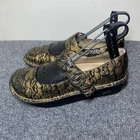 Genuine leather, smashing print for holiday parties when you don't want to wear heels. Classic mary jane styling and a slip-resistant, classic rocker outsole teams up with the signature Alegria footbed for a supportive and comfort-driven feel on your foot. 1 3/4 ergonomic rocking footbed. Adjustable hook-and-loop closures on the strap. A slight padded collar gives you extra support at the back of the ankle and hand-stitching adds an extra ounce of delight. BUYERS: Questions are always welcome:). Stock photos are for illustration-items are generally in good used condition unless stated otherwise from a smoke-free, pet-friendly home. Please check all details to be sure the size, style, and condition will be comfortable for you before bidding. Payment is required within 2 days-please ONLY bid if you truly intend to pay! I ship promptly, just remember I have no control over the current USPS mail delays. Sales are usually final, but contact me if you run into an issue so I have a chance make everything right.
