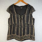 Alfani Boho Artsy 100% Silk Brown Pattern Short Sleeve Blouse Women's Size W22. Made out of 100% shell, and, 100% polyester lining. View approximate measurements below. Pit to pit 24" Length 17" (pit to hem) Sleeve 6" Shoulder to shoulder 18" SKU F35
