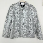 Brand: Alfred Dunner Size: 16 Measurements: Please see photos for approximate measurements. Condition: In good pre-loved condition. Color: Cream, Black Material: poly Features: Front pockets with metal button closure Zip front Long sleeves Stand collar Tags: office, office life, girl boss, boss babe, boss, business, professional, return to work, business casual, smart casual, career, classic, office wear, work outfit, office attire, corporate, wear to work, 9to5style, dress for success, animal print Pre-owned clothing items are properly cleaned, washed, and/or steamed at high heat before listing.