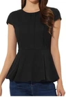 Allegra K Women's Round Neck Workwear Cap Sleeve Peplum Blouse in size S is perfect for any occasion. The blouse has a round neckline and a zip closure. It is made of polyester and spandex, and has a regular fit. The cap sleeves and peplum style add a touch of elegance to the blouse, making it suitable for formal events, business meetings, or even casual outings. This blouse is available in black and is suitable for the summer, fall, and spring seasons.