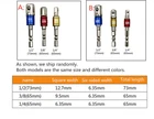 Product Description If you have any questions, please contact customer service first, do not open disputes easily, thank you! Feature: Spring loaded ball bearing on head holds sockets securely Suitable for quick change 1/4" chuck systems or directly into drill chuck Change your hand socket set into a driven socket set Perfect for your impact driver or drill Allows you to replace your ratchet with a power tool These impact ready adapters are rated for the most demanding of applications The 1/4" hex shank fits all quick change chucks as well as standard drill chucks Specification: Material: Aluminum Alloy(CR-V) Color: As Pictures Show Sockets Standard 1/4" Hex Shank size:As Pictures Show Package include: 1*3pcs Set Note: 1.Please allow 1-2mm error due to manual measurement. Please make sure you do not mind before you bid. 2.The colors may have different as the difference display, please understand. About Us We accept all payments authorized by eBay. powered by