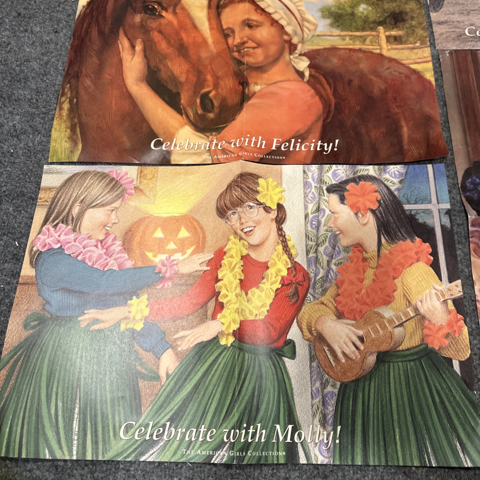Lot of 6 vintage American Girl "Celebrate with..." posters. These are in good condition but do have some wear and tear to some of the corners and edges. There are no major rips, tears or holes except Samantha, which has a tear on the middle right side. Please see photos for measurements and additional details. Ships via USPS Free 30 Day Returns